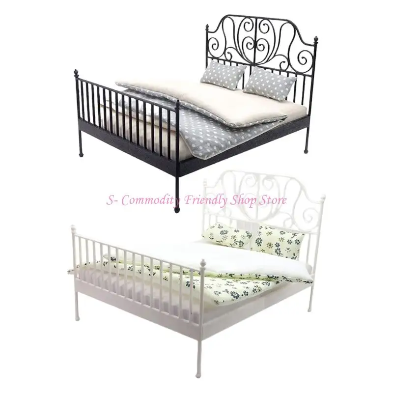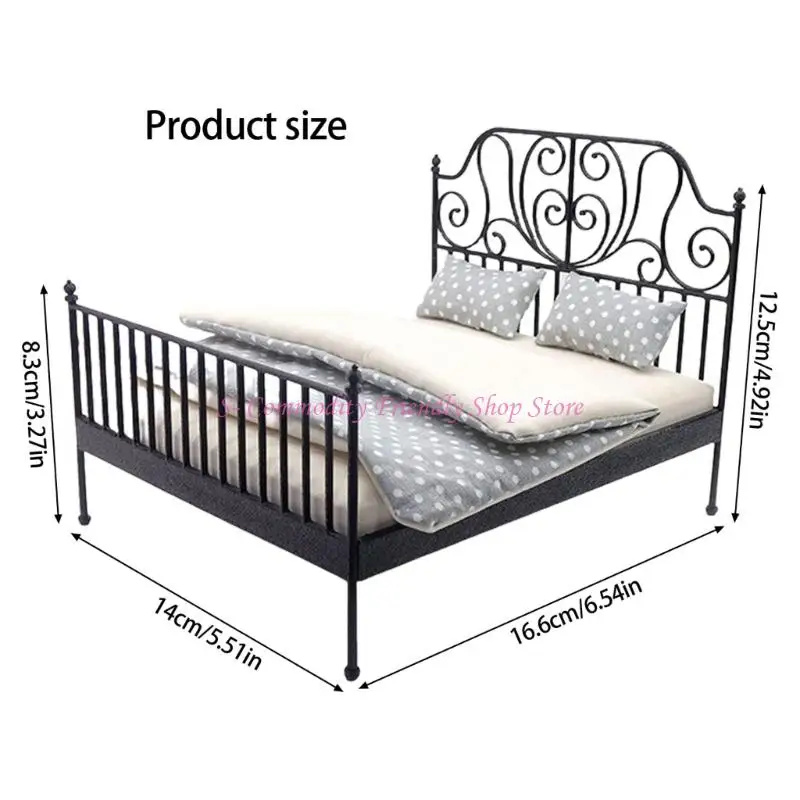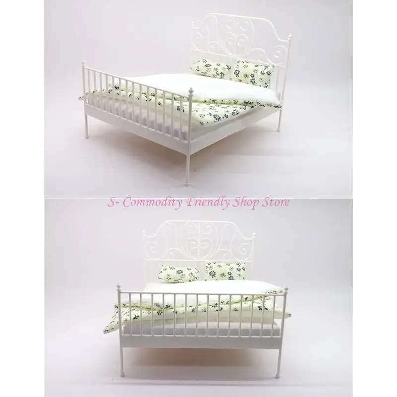 Features:OOTDTYExquisitely 1/12 scale metal dollhouses bed features wrought iron design with detachable bedding, perfect for creating enchanting miniature bedroom.
