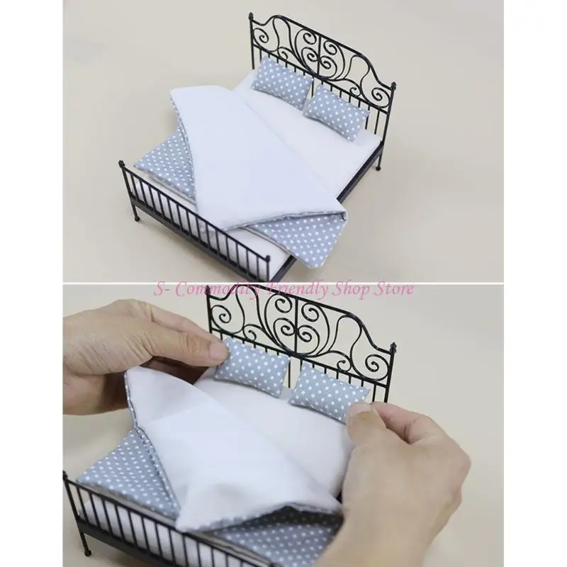 Enhancing realistic dollhouses layout, miniature photography project, or craft workshops with this bedroom set including pillow and beddings.
