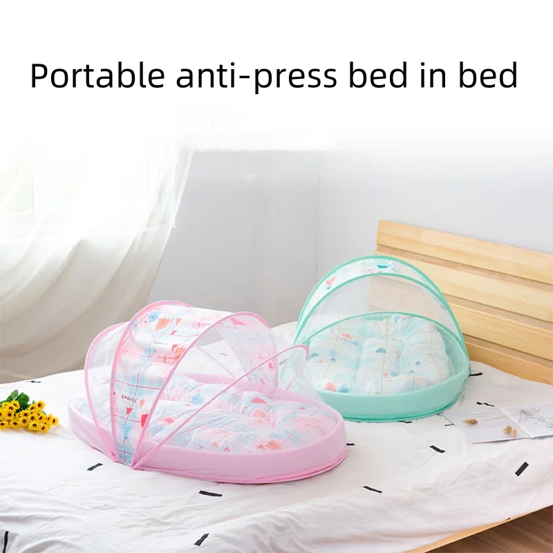 Cama portátil a prueba de presión para bebé, cama mediana, cuna para el hogar, cama plegable para recién nacido, cama bb biónica de red con almohadilla de algodón