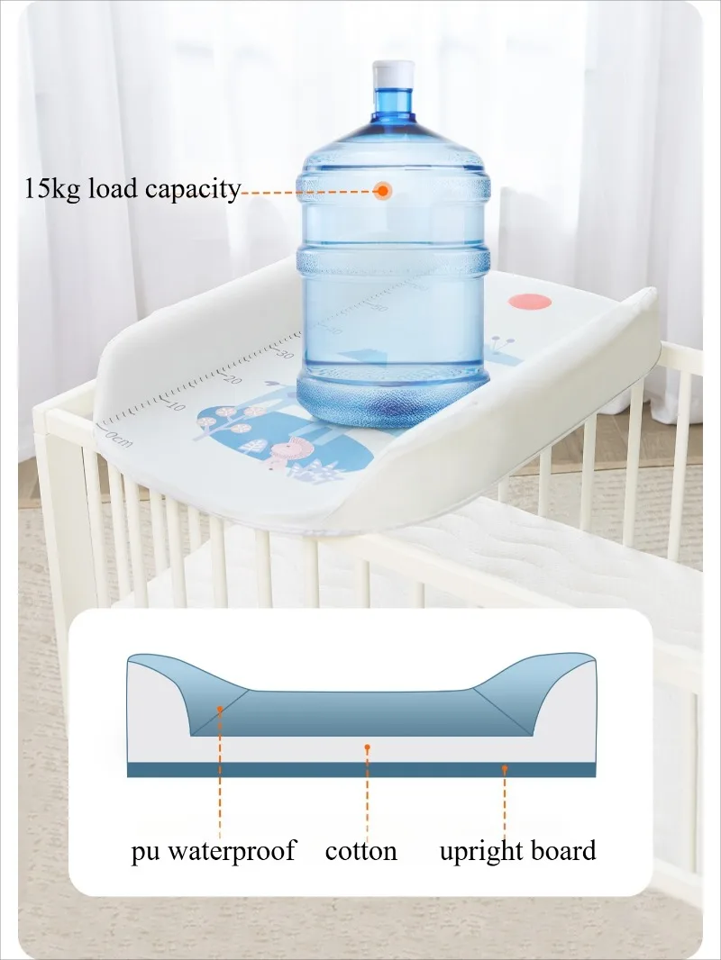 Cambiador de bebé, cinturón de seguridad ajustable, suave y antideslizante, lavable e impermeable, mesa para cambiar pañales para Cribe