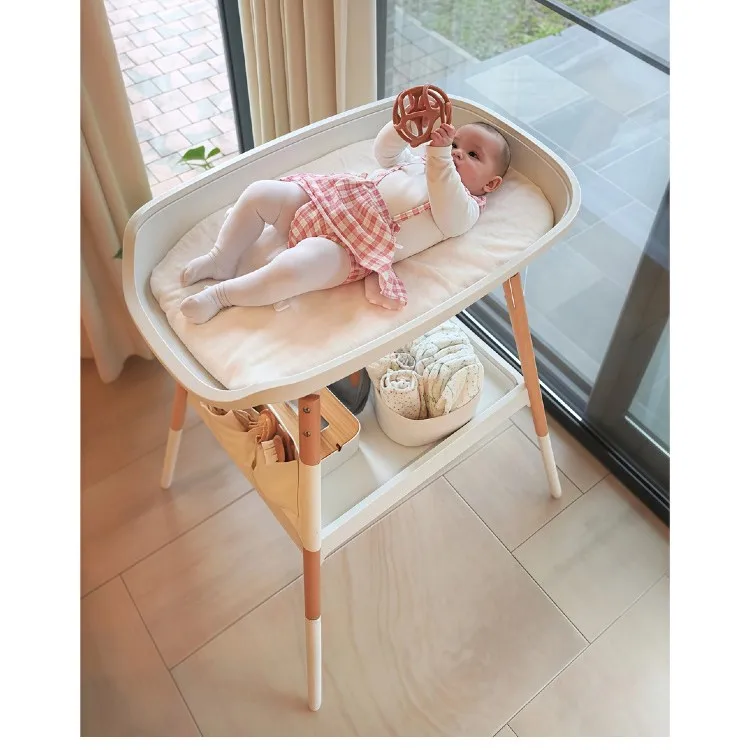 Comprar Cambiador de pañales para bebés, estación de cambio y baño para bebés 2 en 1 con almohadilla, cómoda de madera para guardería de fácil montaje con protector de seguridad