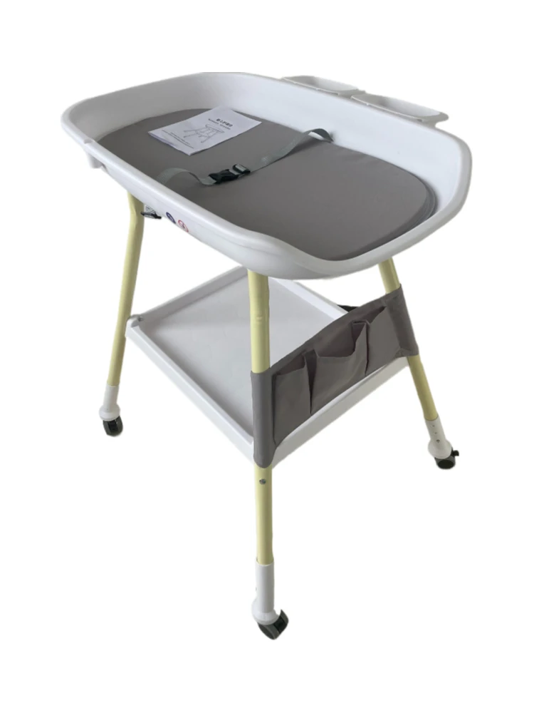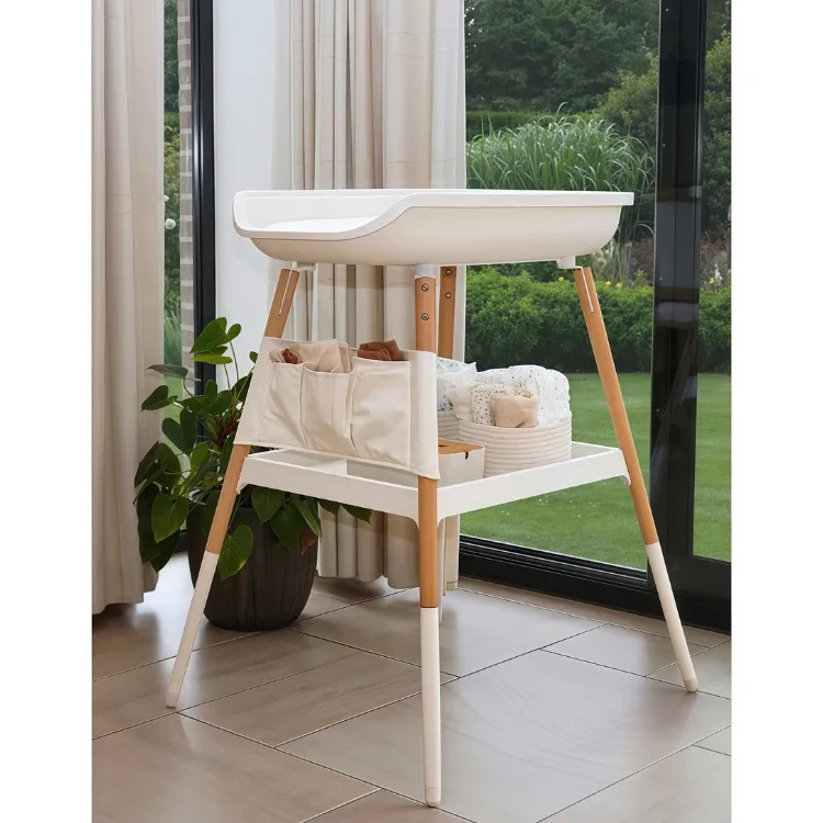 Comprar Cambiador de pañales para bebés, estación de cambio y baño para bebés 2 en 1 con almohadilla, cómoda de madera para guardería de fácil montaje con protector de seguridad