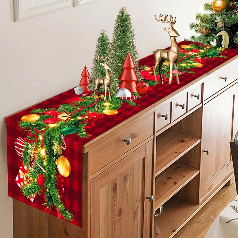 Comprar Camino de mesa navideño de poliéster, decoración para el hogar, regalos de Navidad, Año Nuevo, 2024, 2025