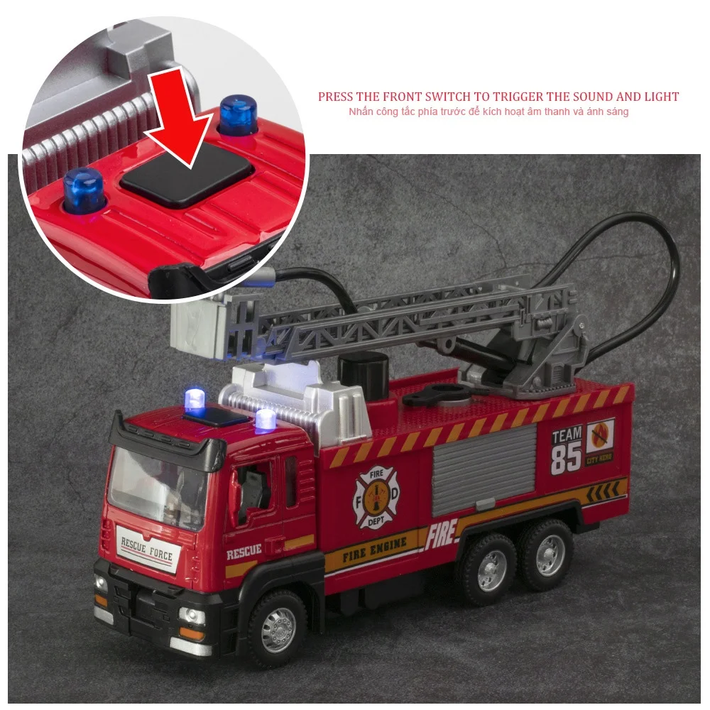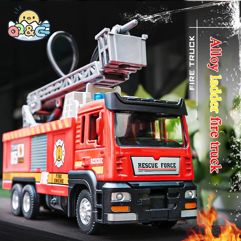 Comprar Camión de bomberos con rociador de agua, juguete de simulación de aleación, sonido y luz, escalera de rescate, camión de bomberos, modelo de coche, juguetes para niños, regalo de cumpleaños