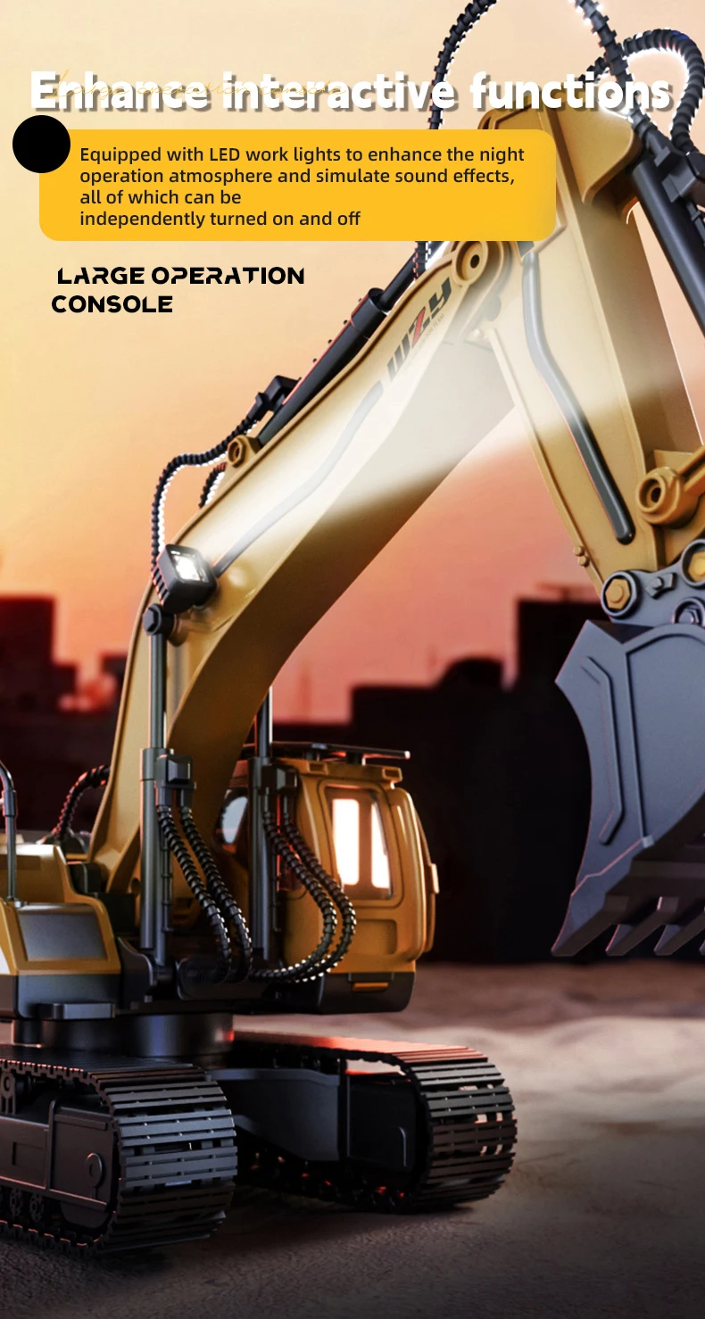 【12 canales】 Luces, música, adelante, atrás, giro a la izquierda, giro a la derecha, rotación a la izquierda y a la derecha en el lugar, excavación hacia adelante de 1 sección del brazo, empuje inverso de 1 sección del brazo, giro a la izquierda del puente, giro a la derecha del puente