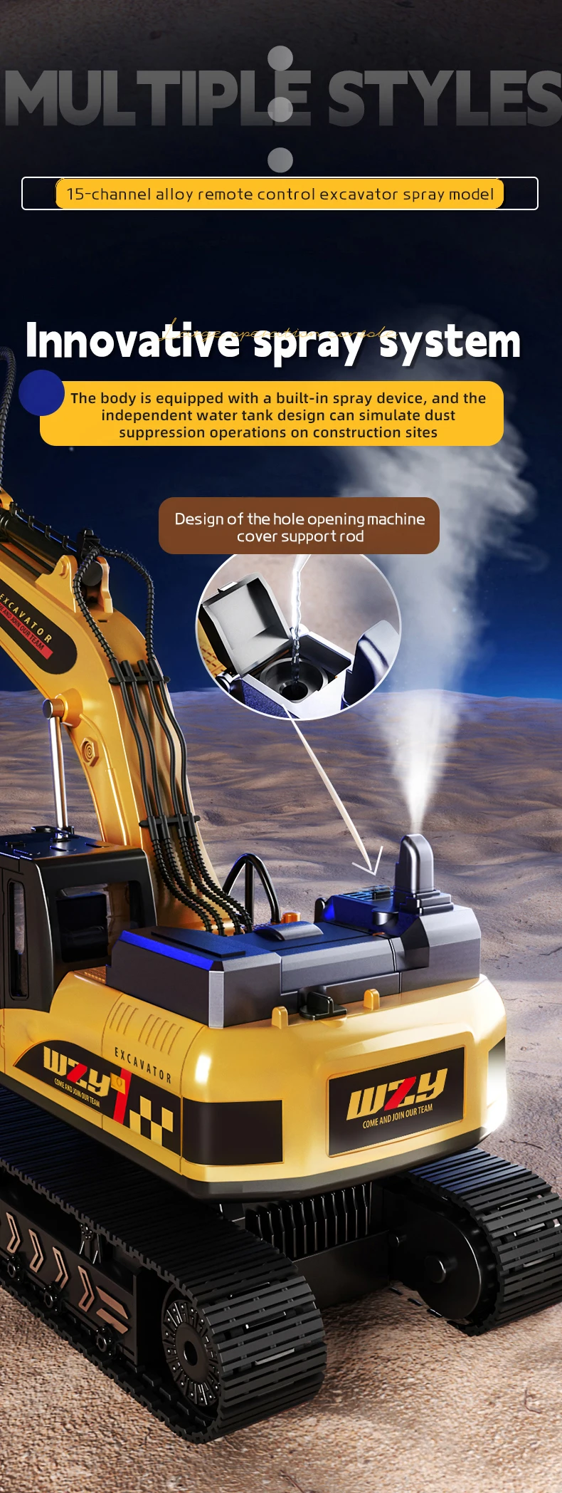【 13 canales 】 Luces, música, adelante, atrás, giro a la izquierda, giro a la derecha, rotación a la izquierda y a la derecha en el lugar, excavación hacia adelante de 1 sección del brazo, empuje inverso de 1 sección del brazo, giro a la izquierda del puente, giro a la derecha del puente, rociado