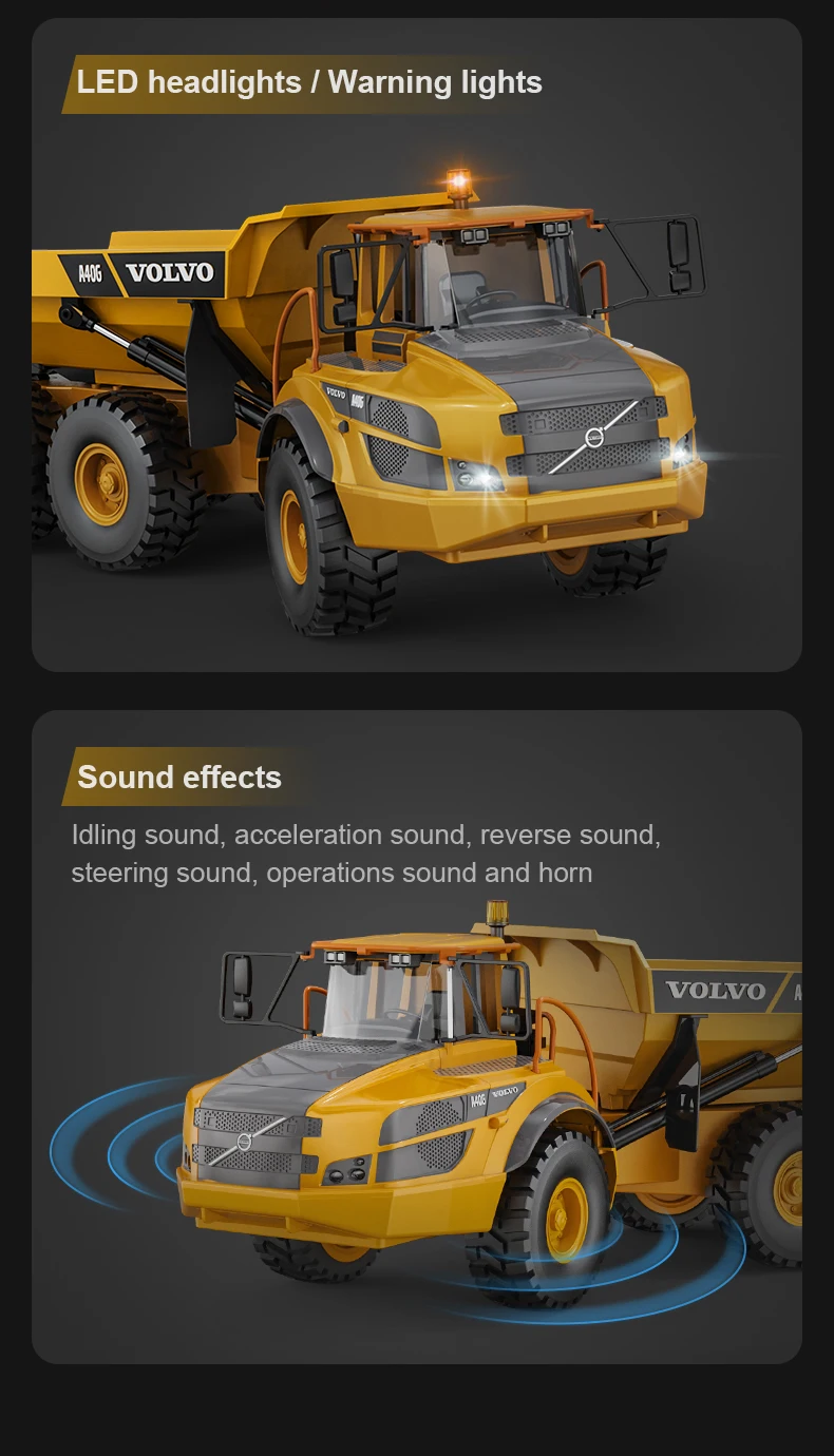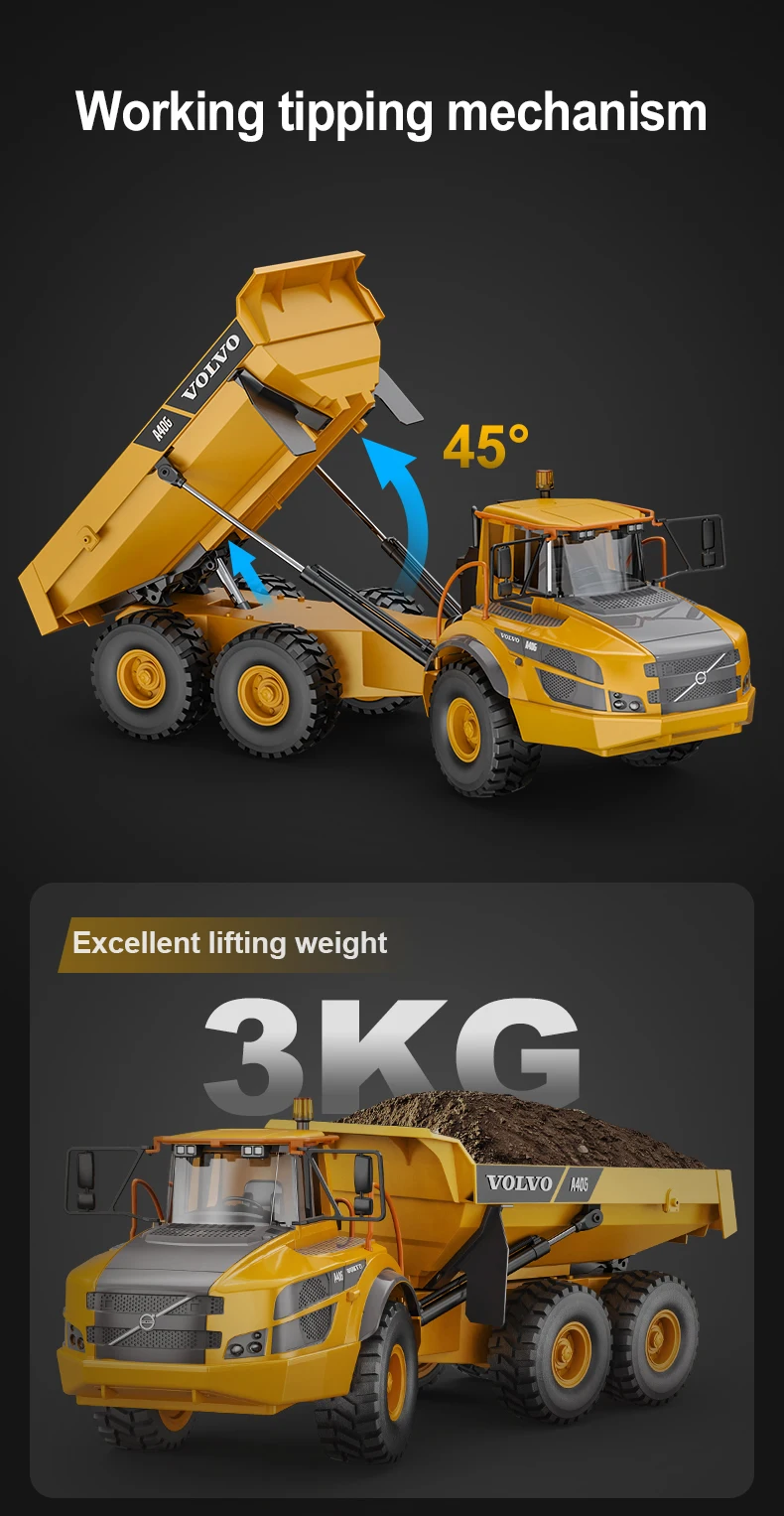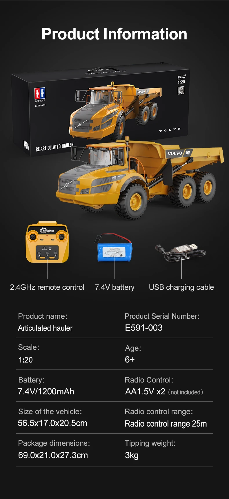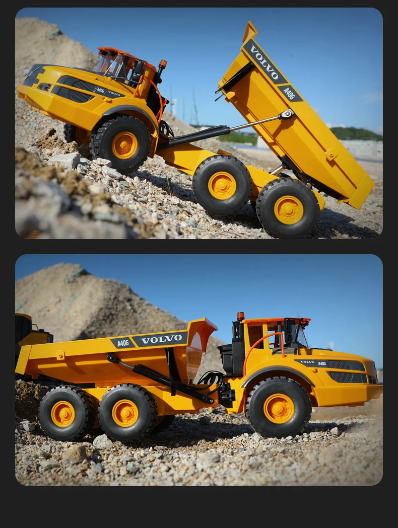 Comprar Camión teledirigido grande doble E E591 A40G, volquete teledirigido 1:20, coches de aleación, camiones, Control remoto, Tractor, volquete articulado, coche de ingeniería