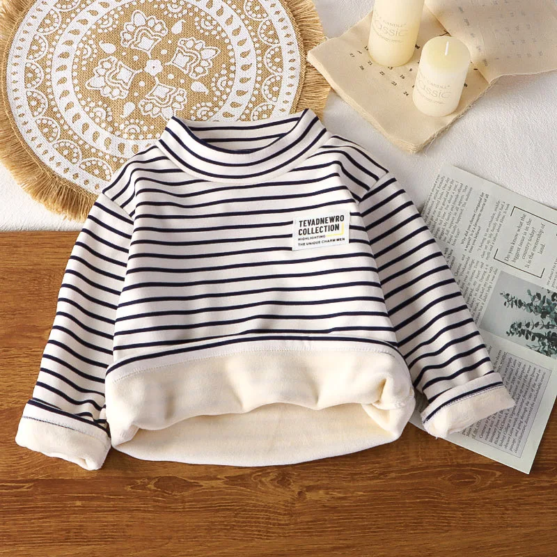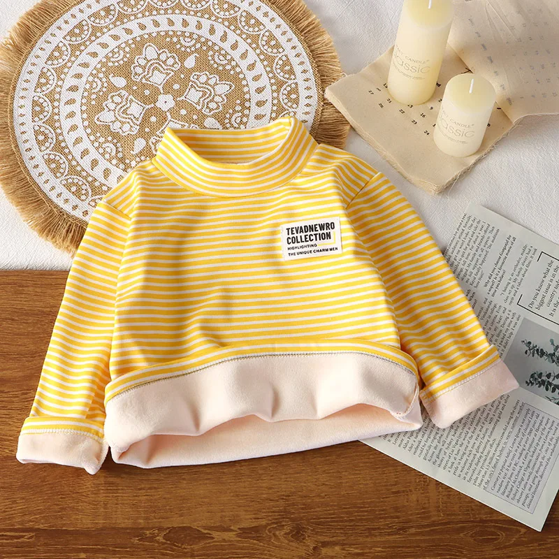 Comprar Camisa de manga larga para niña de 0 a 8 años, camiseta informal de cuello alto para otoño e invierno, ropa superior a rayas para niño