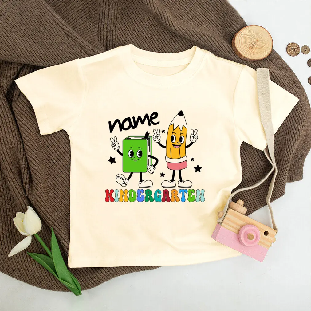 Camisa personalizada para guardería, camiseta con nombre personalizado para volver a la escuela, camiseta Retro de manga corta para niñas y niños, camisetas para niños en edad preescolar de verano