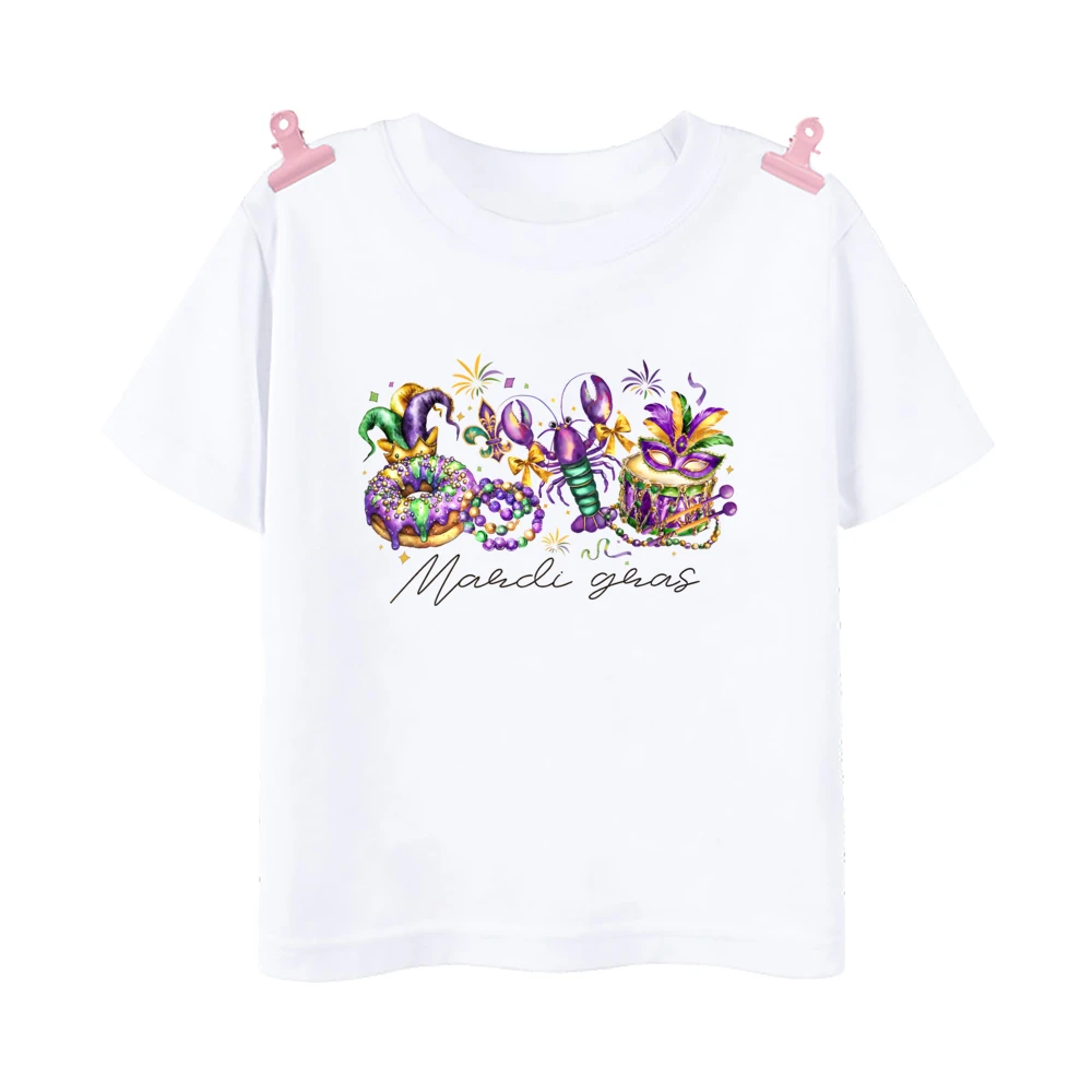 Camisetas con estampado de lazo de Mardi Gras para niños, ropa de carnaval para niños y niñas, camiseta de vacaciones para niños, camisetas de manga corta, ropa