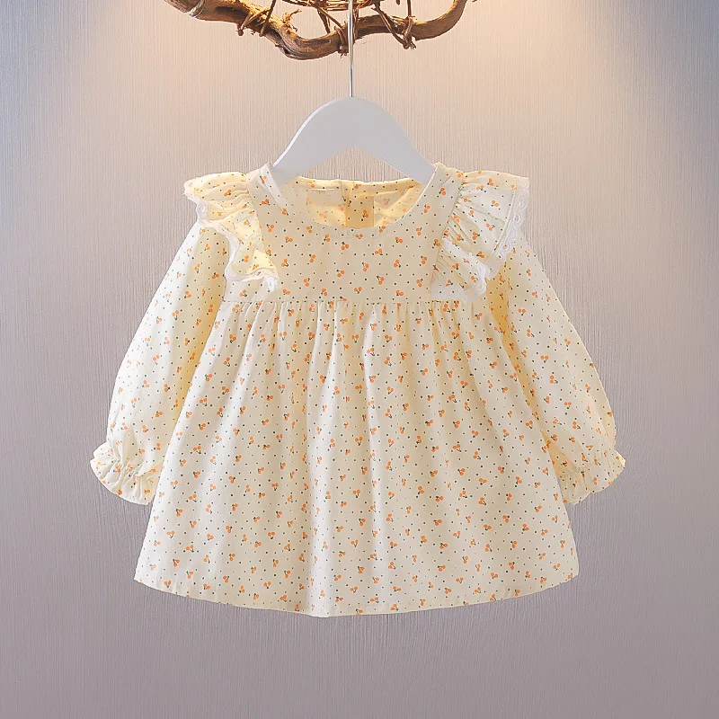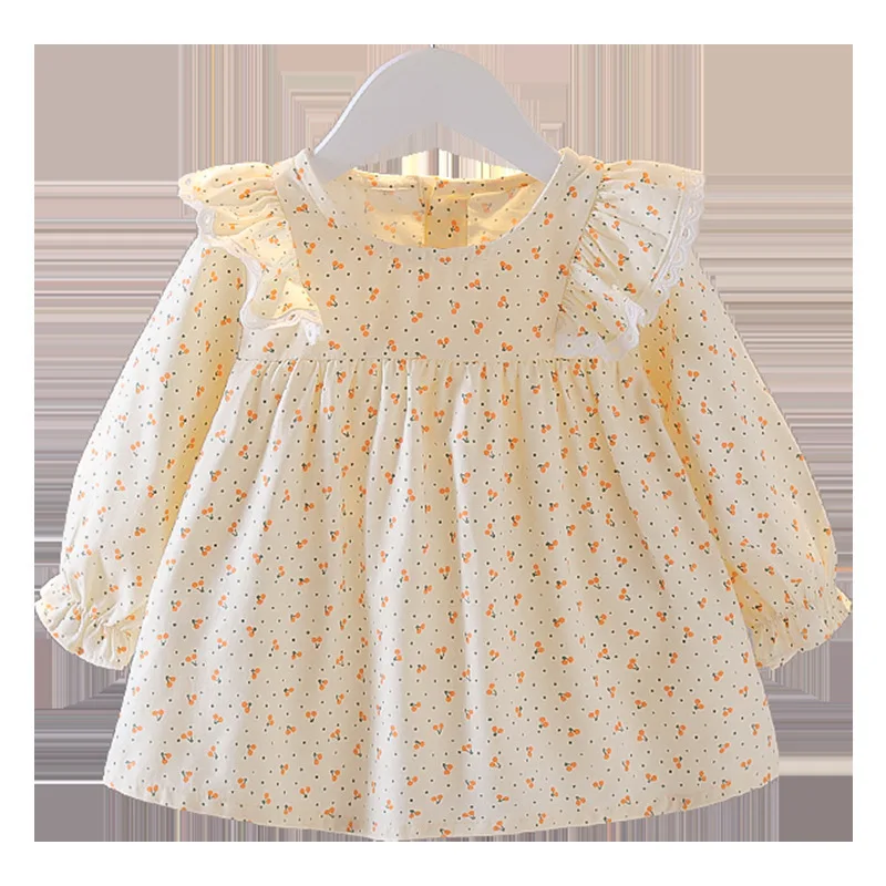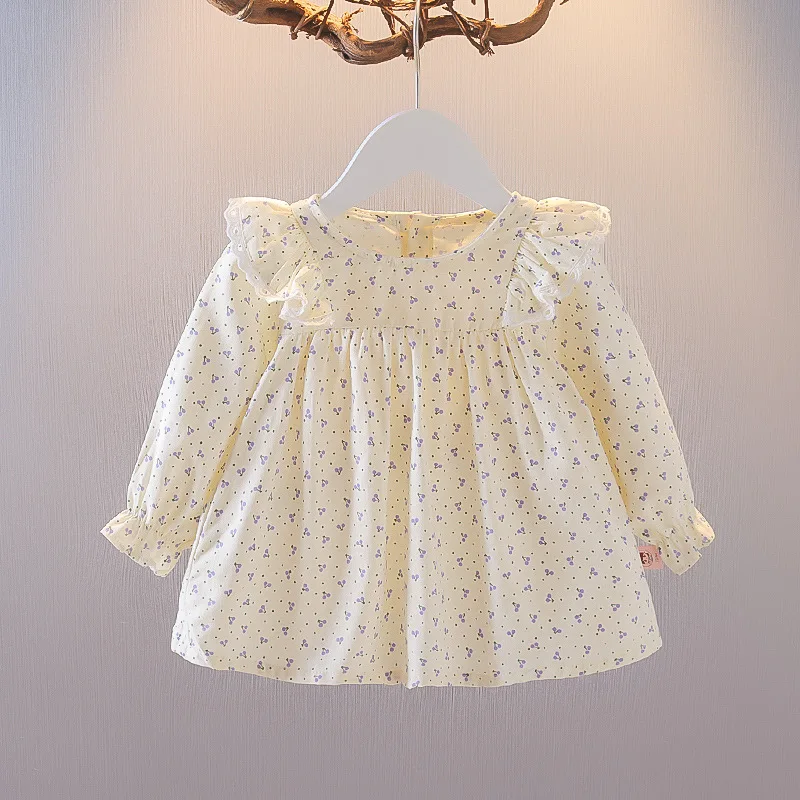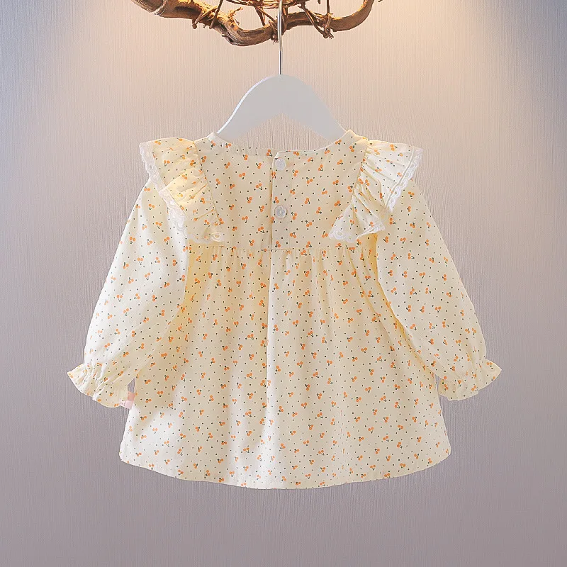 Camisas florales para niñas, primavera y otoño, algodón infantil, Top de manga larga de algodón, camisas de bebé con cuello redondoTamaño
