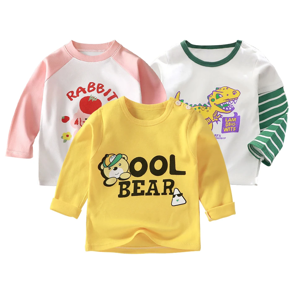 Comprar Camisas de manga larga para niños, camisetas cómodas y suaves para primavera y otoño, ropa escolar informal de conejito de dinosaurio de dibujos animados, sudadera para niños y niñas