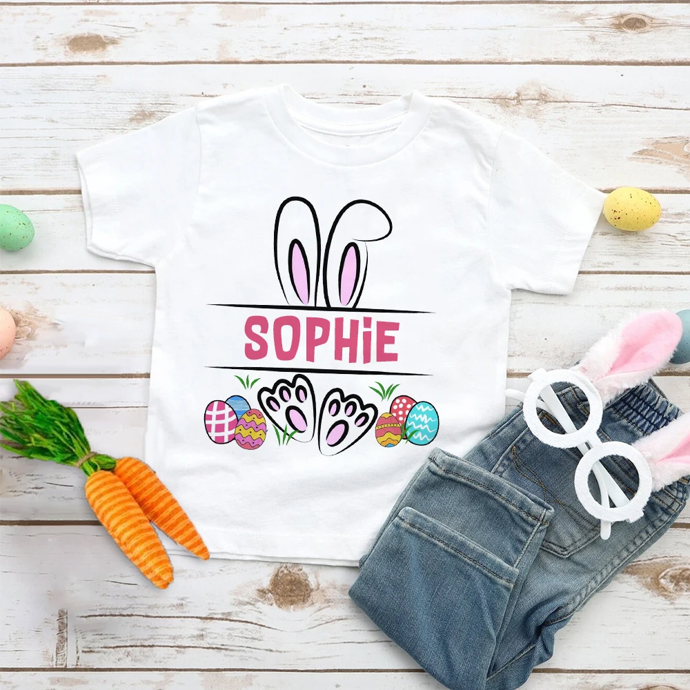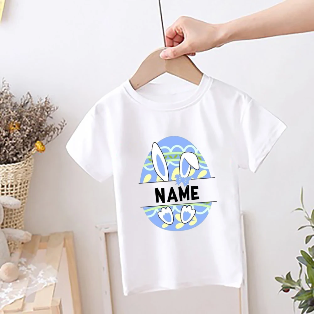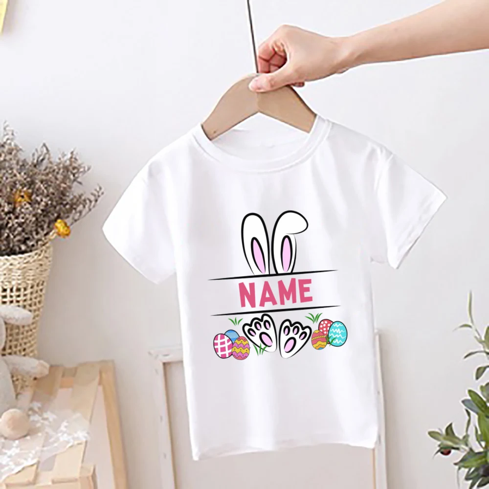Personalized Kids Easter Bunny Shirts Custom Name Child Clothes Tops Boys Girls T-shirt Easter Party Outfit Child Holiday Shirt