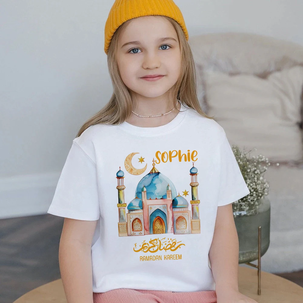 Comprar Camisas personalizadas con estampado de Ramadán Kareem, camiseta con nombre personalizado para niños, camiseta de Eid Ramadán para niños, traje de vacaciones musulmanas islámicas para niños y niñas