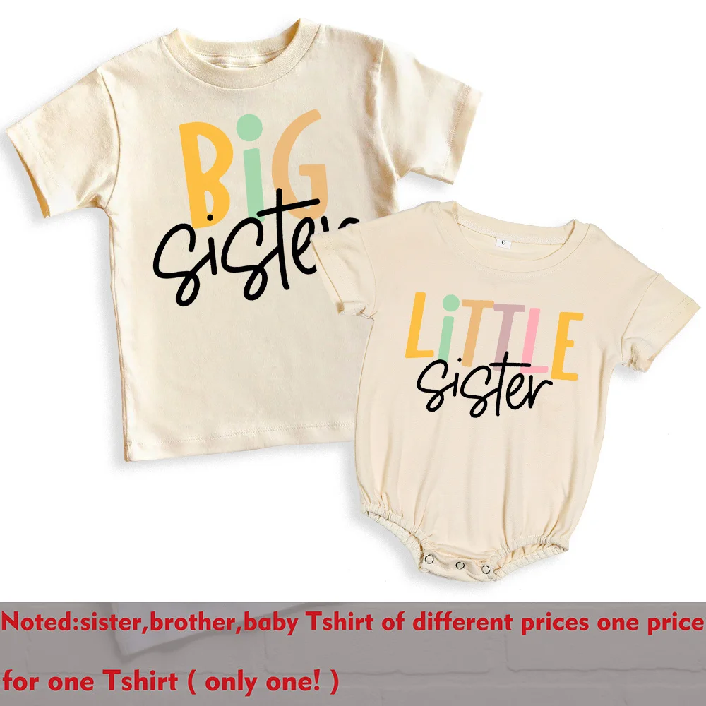 Gran hermano pequeña hermana estampado familia traje a juego camisa Retro hermano Tops hermano hermana camiseta bebé mameluco de burbujas grande