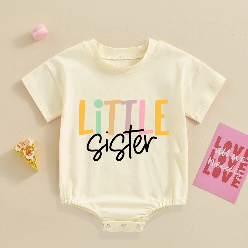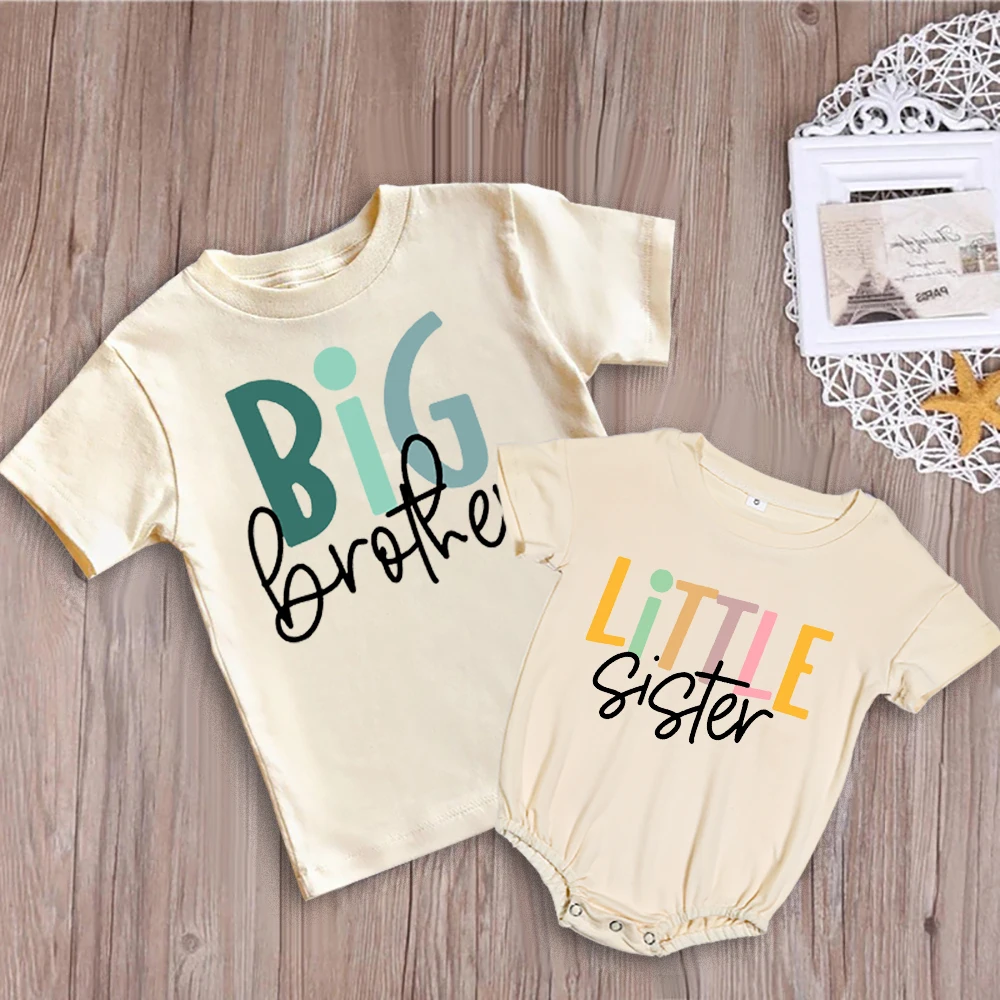Gran hermano pequeña hermana estampado familia traje a juego camisa Retro hermano Tops hermano hermana camiseta bebé mameluco de burbujas grande