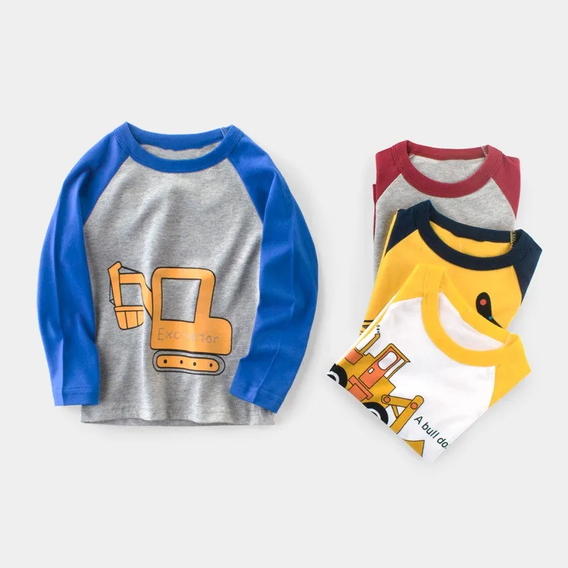 Diseño: los patrones geniales de camiones y excavadoras se juegan en alta resolución, no se caen fácilmente, la tela suave, la camiseta de dibujos animados favorita del niño.
