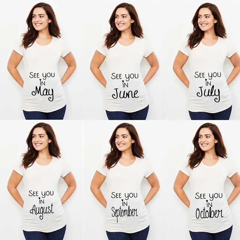 Comprar Camiseta con anuncio estampado See You In May para embarazadas, camiseta de manga corta de maternidad, camiseta para embarazo, camisetas para nueva mamá, ropa, Tops