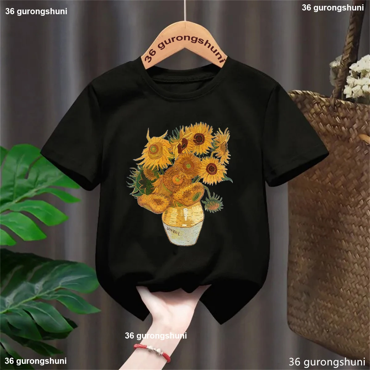 Comprar Camiseta de arte Vintage de Van Gogh para niños y niñas, ropa estética de estilo Harajuku, girasoles, Vangogh, Unisex
