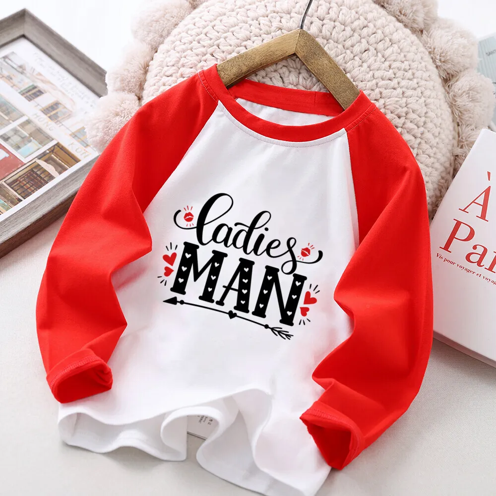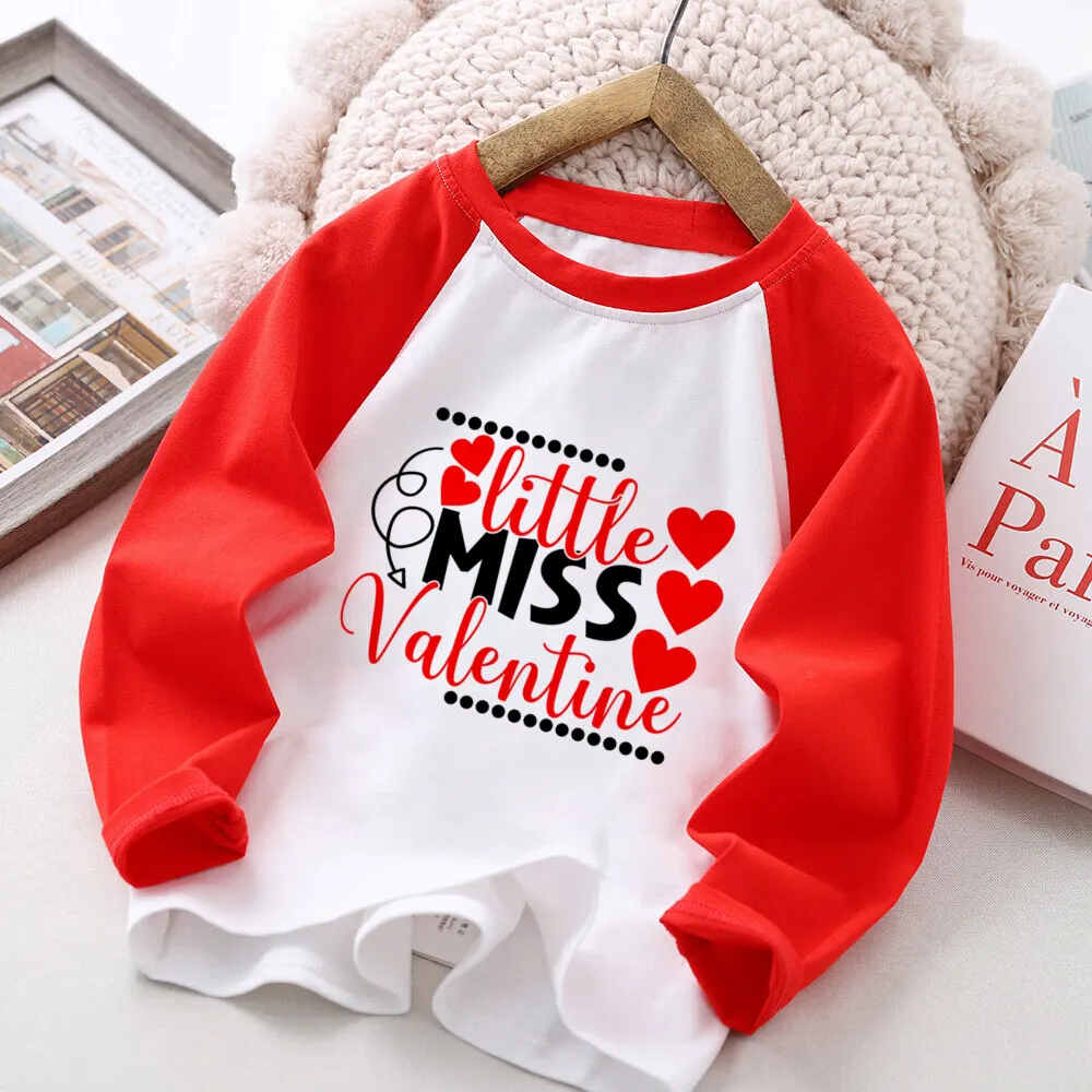 Camiseta de béisbol con estampado de corazón, camiseta para niños del Día de San Valentín, ropa de manga larga raglán para niños, trajes de San Valentín para niños