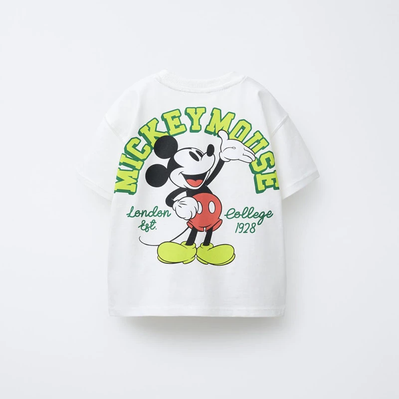 Comprar Camiseta blanca de Mickey Mouse para niños, ropa de moda de verano, camisetas de algodón puro, jersey fino y sencillo que combina con todo