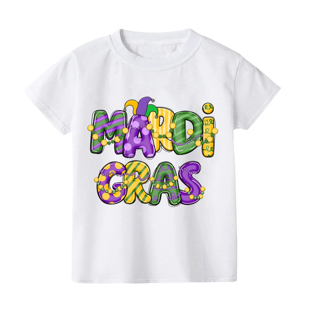 Camiseta de carnaval de Mardi Gras para niños, camiseta de vacaciones Happy Mardi Gras Day, camiseta para niños y niñas, camisetas de fiesta para niños pequeños, trajes