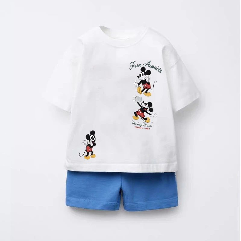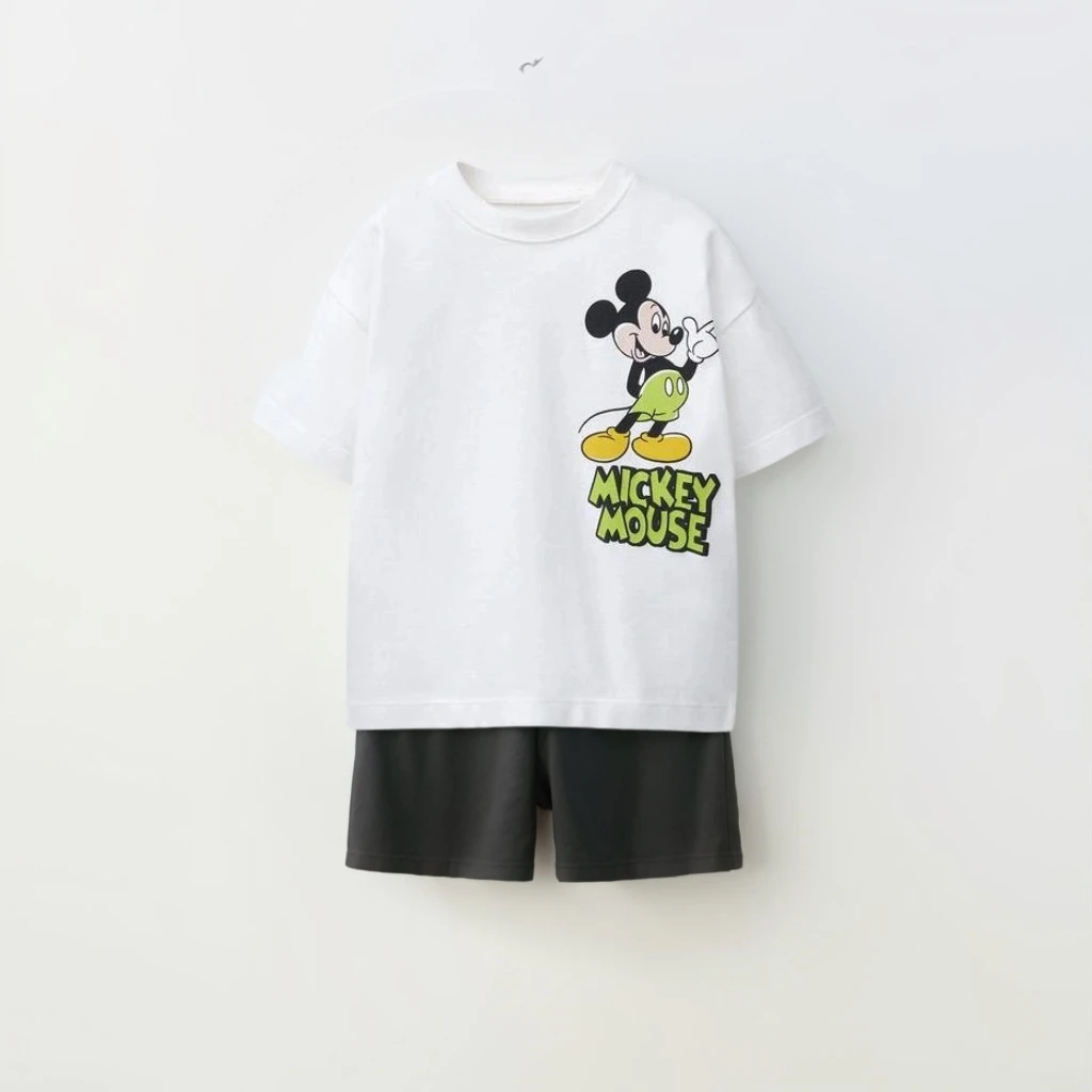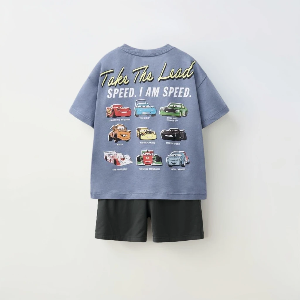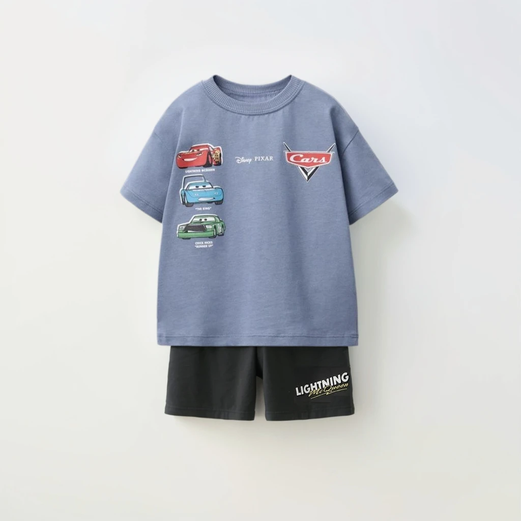 Comprar Camiseta de coche de dibujos animados + Pantalones cortos, 2 uds., camisetas de cuello redondo a la moda para niños, pantalones cortos sueltos informales finos, chándales de manga corta para niños