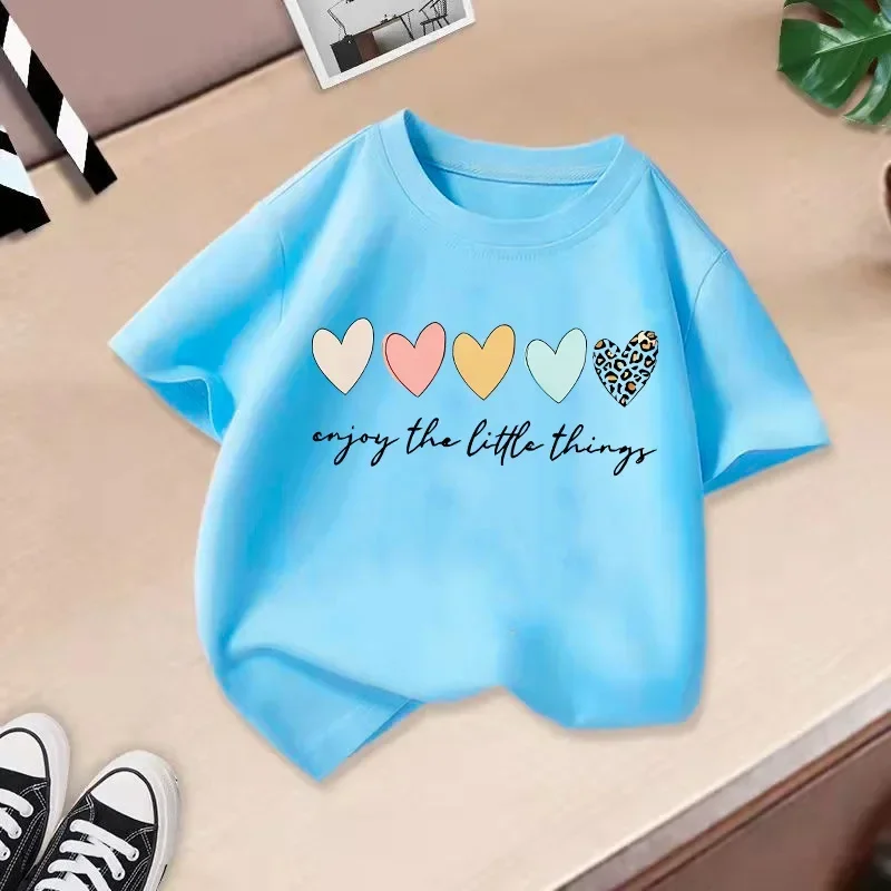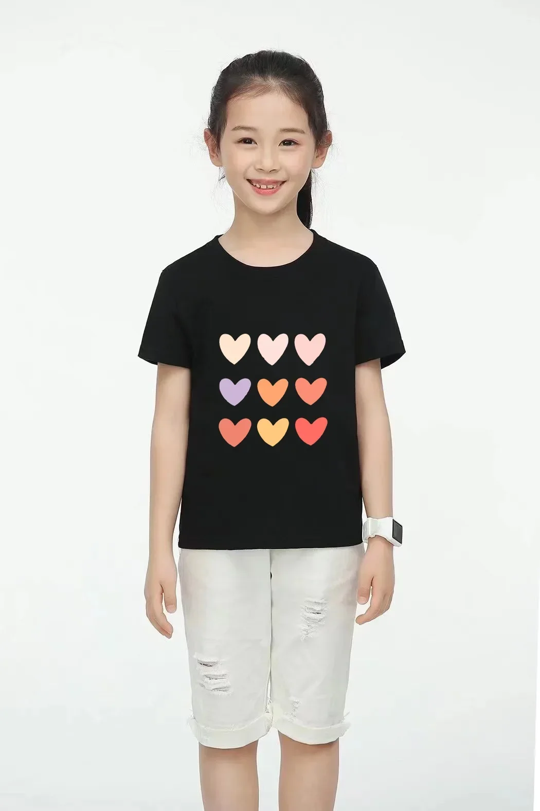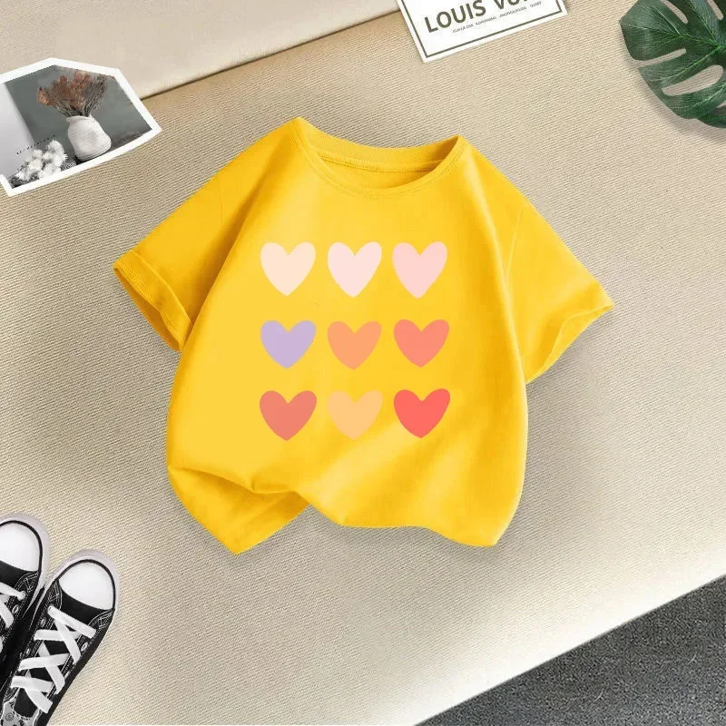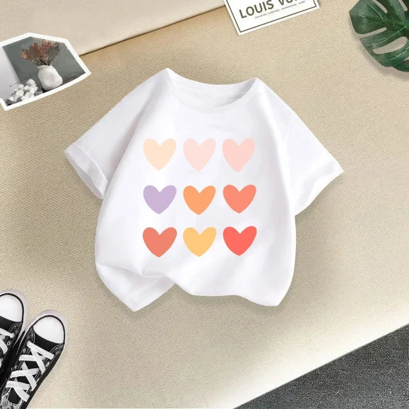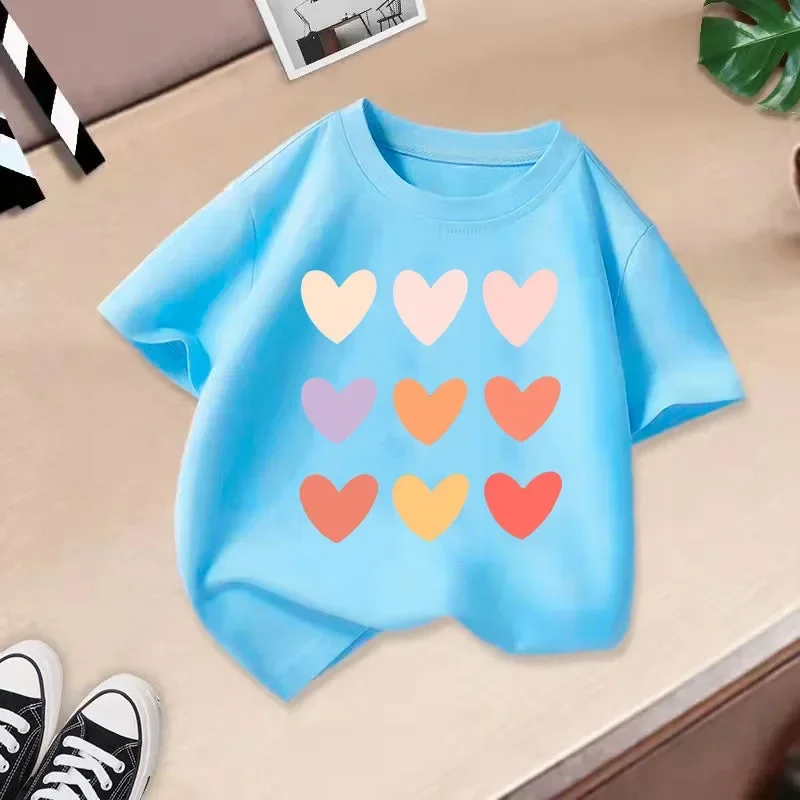 Camiseta con corazones de amor de arcoíris para niños, ropa informal para niños y niñas, camiseta básica de media manga para bebé de manga corta a la moda