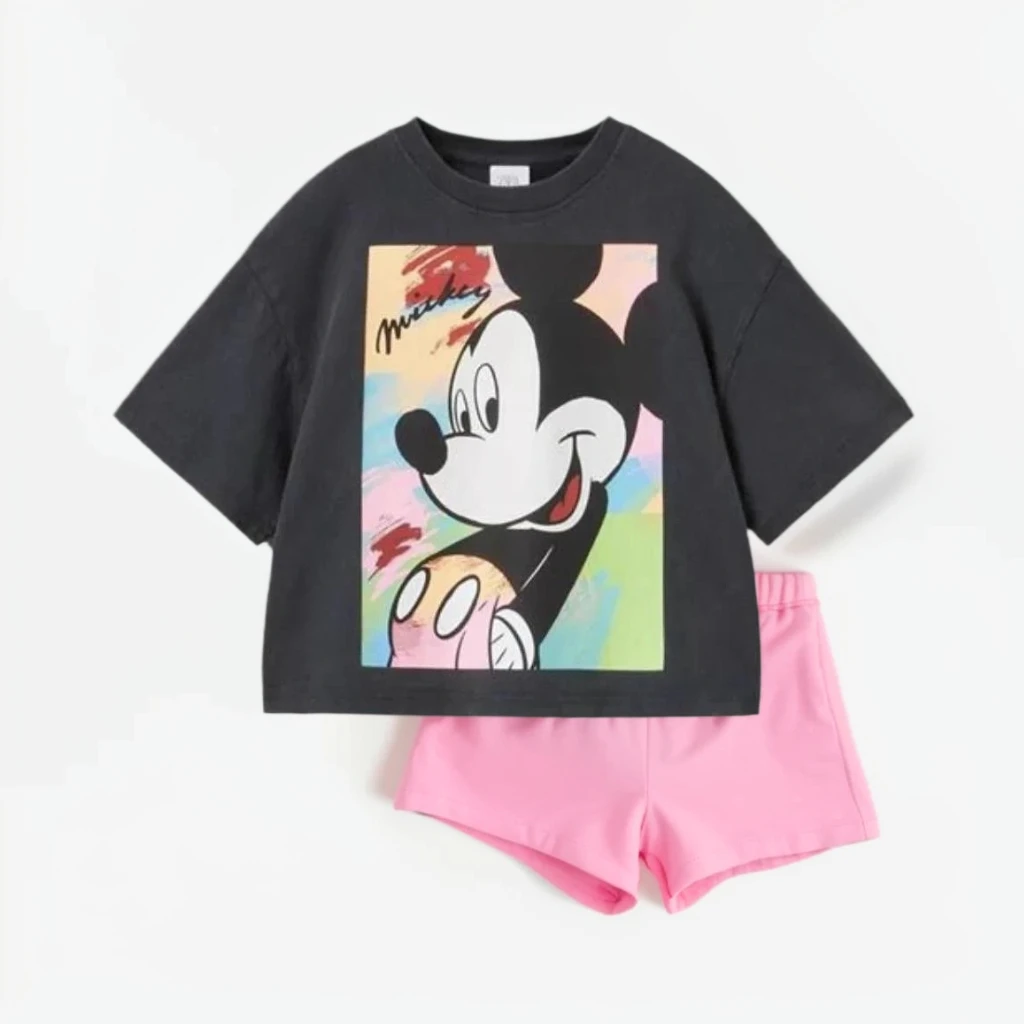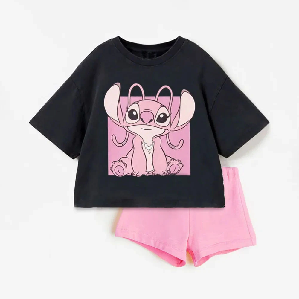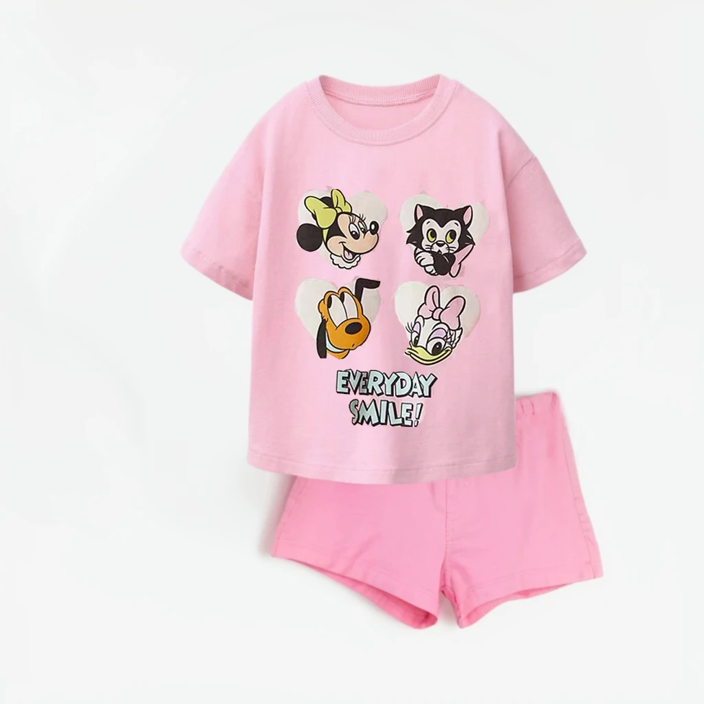 Camiseta de dibujos animados de verano, pantalones cortos rosas, conjunto de dos piezas, disfraz holgado informal para niños, trajes de manga corta, camisetas bonitas para niñas y niños + Pantalones cortos