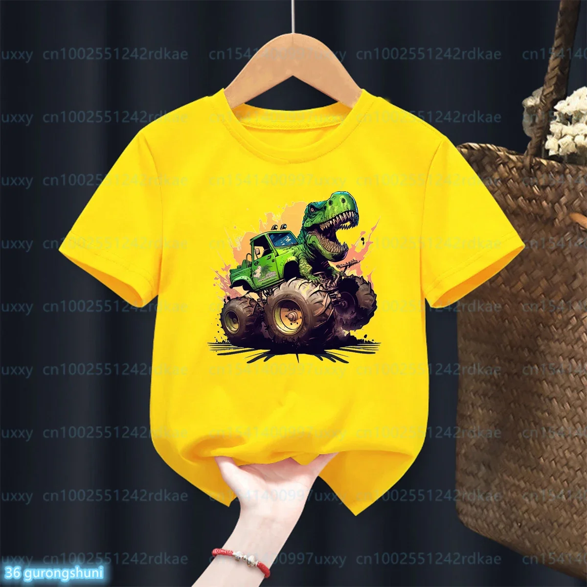 Comprar Camiseta divertida para niños, Camiseta con estampado gráfico de motocicleta, camiseta amarilla de manga corta, Top para bebé