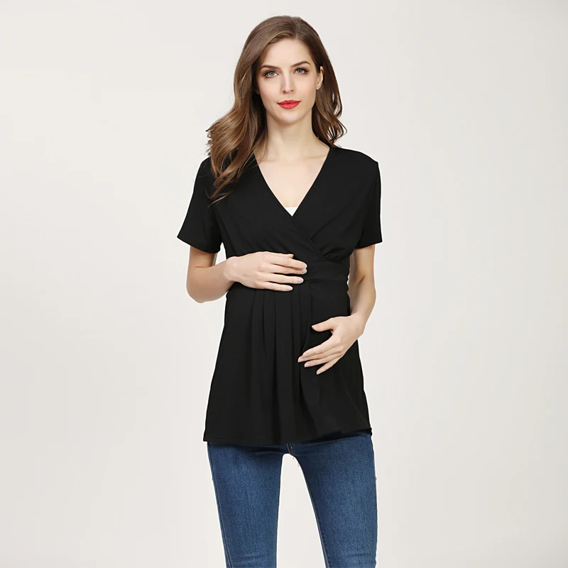 Emotion Moms Camiseta de verano para embarazadas Tops de maternidad Camisa de talla grande para mujer Ropa de color sólido