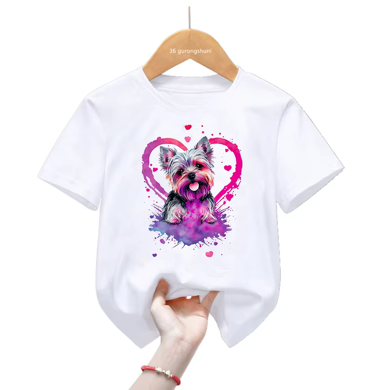 Comprar Camiseta con estampado de animales de Yorkshire para niños y niñas, ropa blanca divertida, camiseta de manga corta de moda de verano, amor de acuarela