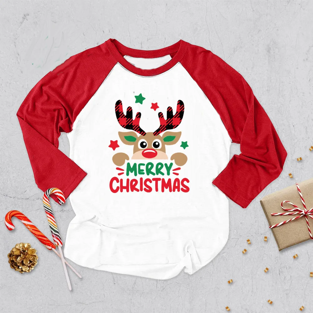 Camiseta con estampado de ciervos de Feliz Navidad para niños y niñas, camisetas con mangas raglán, ropa para hermanos, camiseta para niños, traje de Navidad