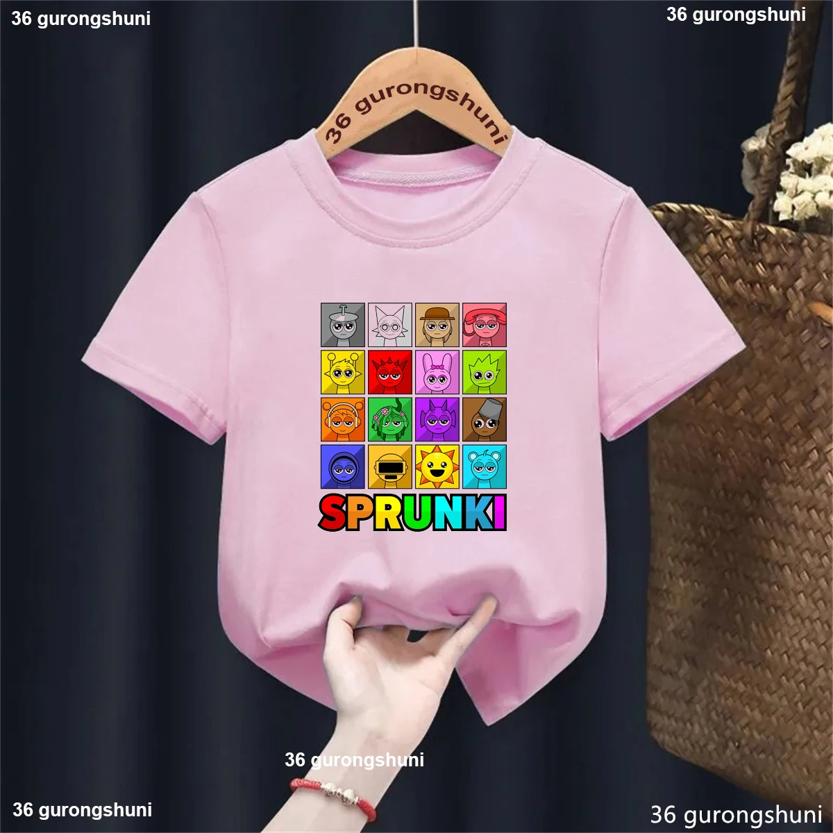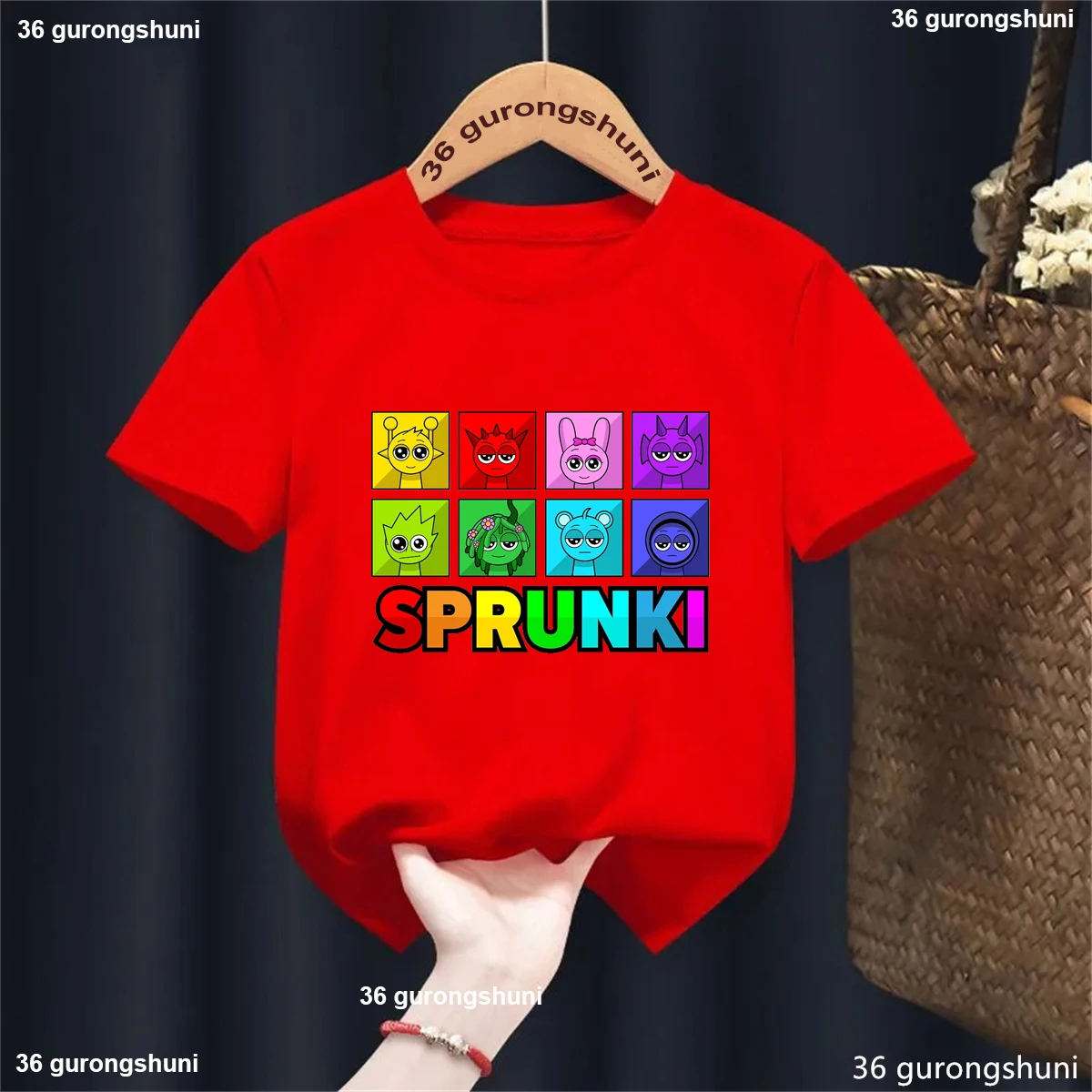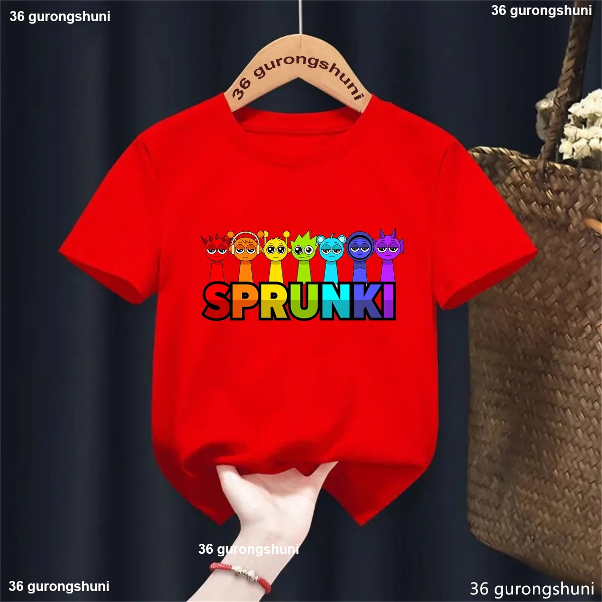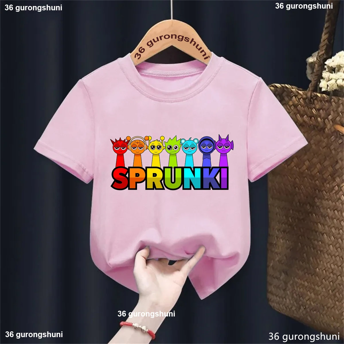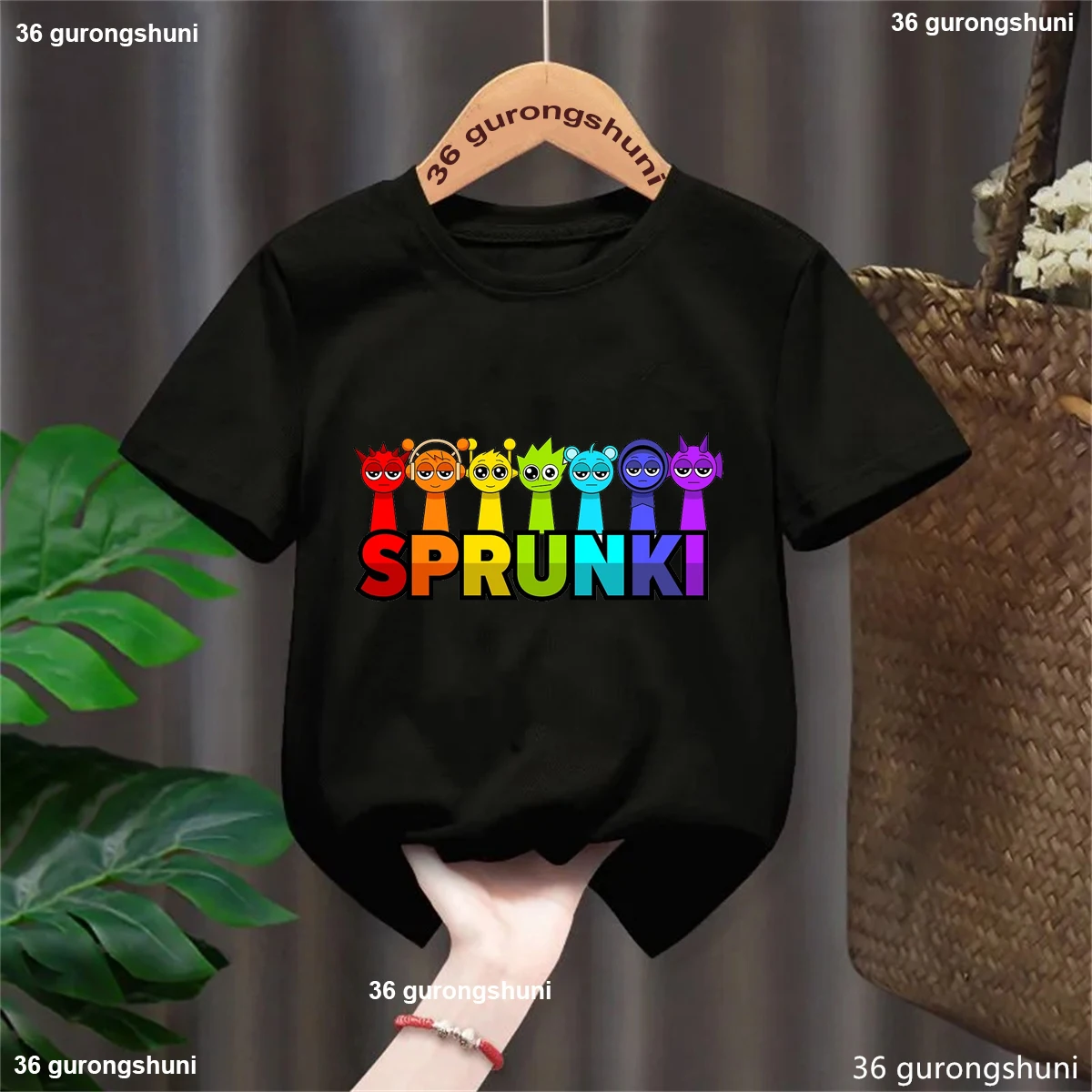 Camiseta con estampado con dibujo de juego de música Rainbow Sprunki, ropa Kawaii para niños y niñas, camisetas lisas de manga corta de verano