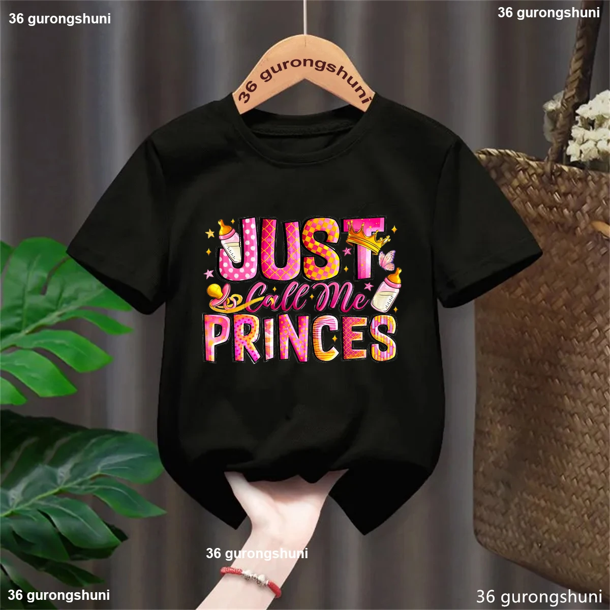 Camiseta con estampado con dibujo de Just Call Me Princes para niñas, ropa Harajuku Kawaii para niños, camiseta de manga corta de verano, camiseta de regalo de cumpleaños