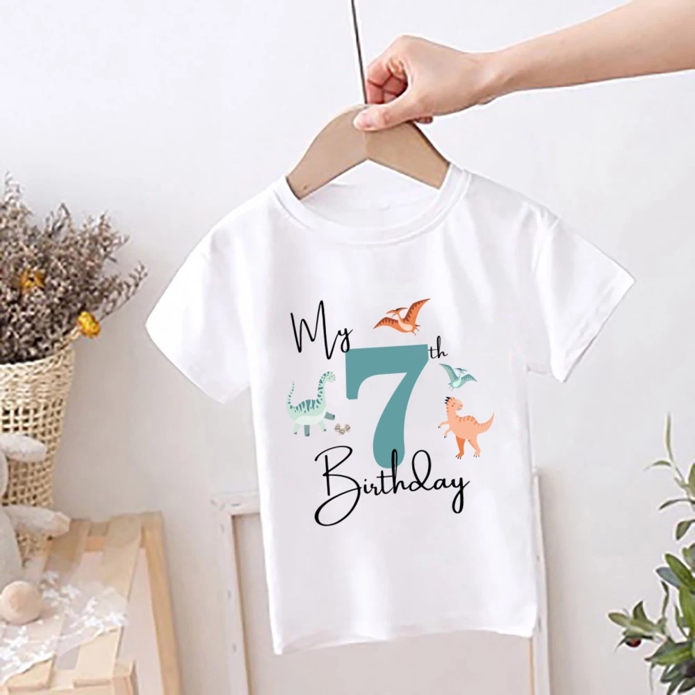 Camiseta con estampado de dinosaurio para niños de 1 a 9 años, camiseta de cumpleaños para niños, traje de fiesta para niños, camiseta de manga corta, Top de verano para niños pequeños