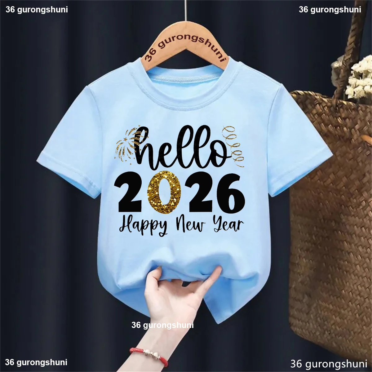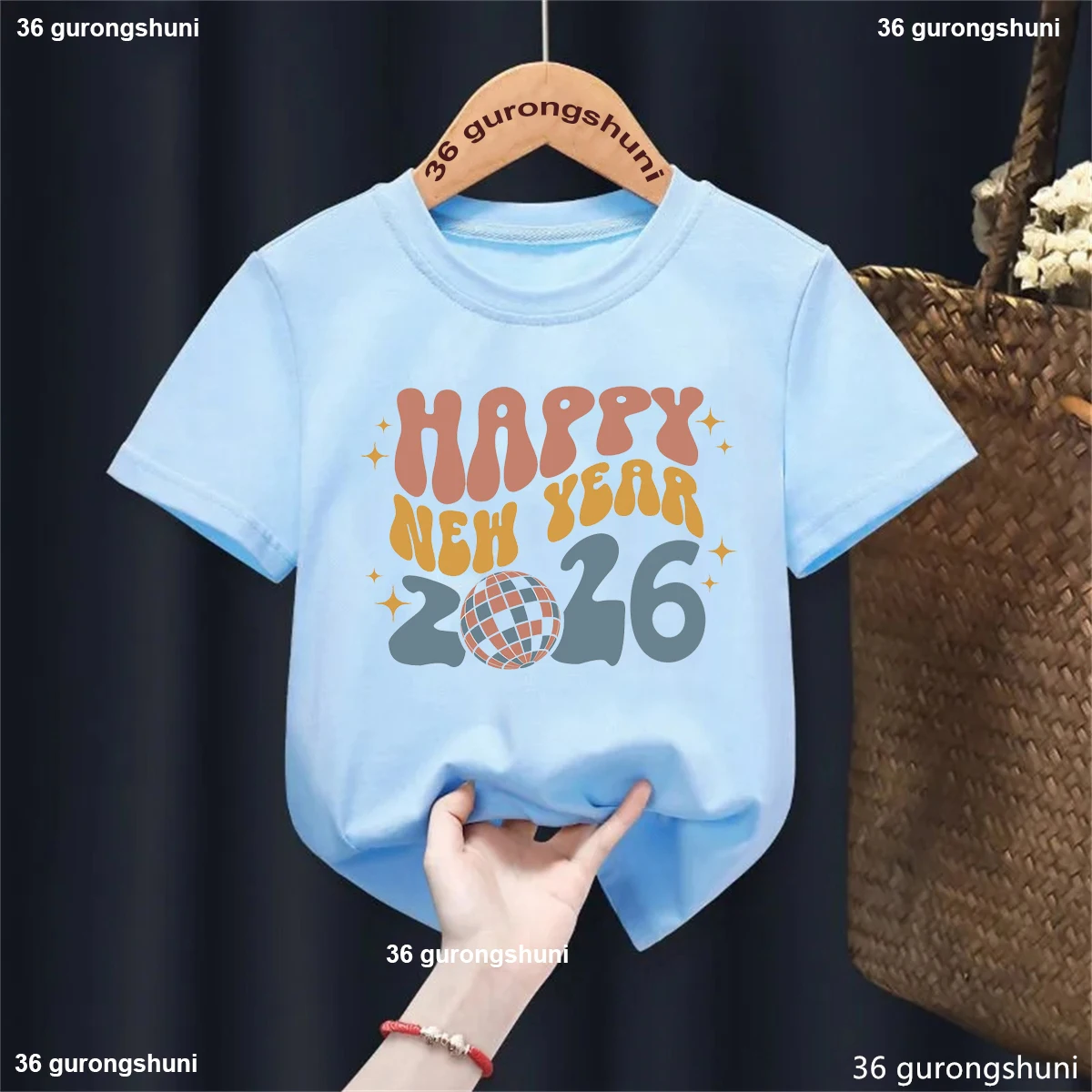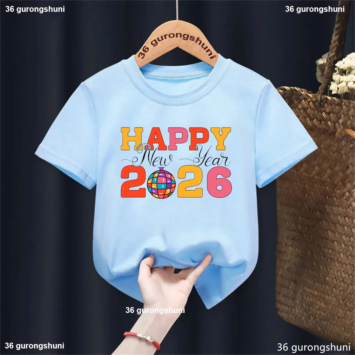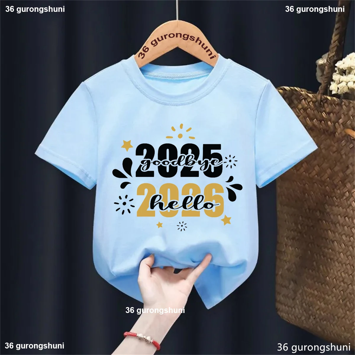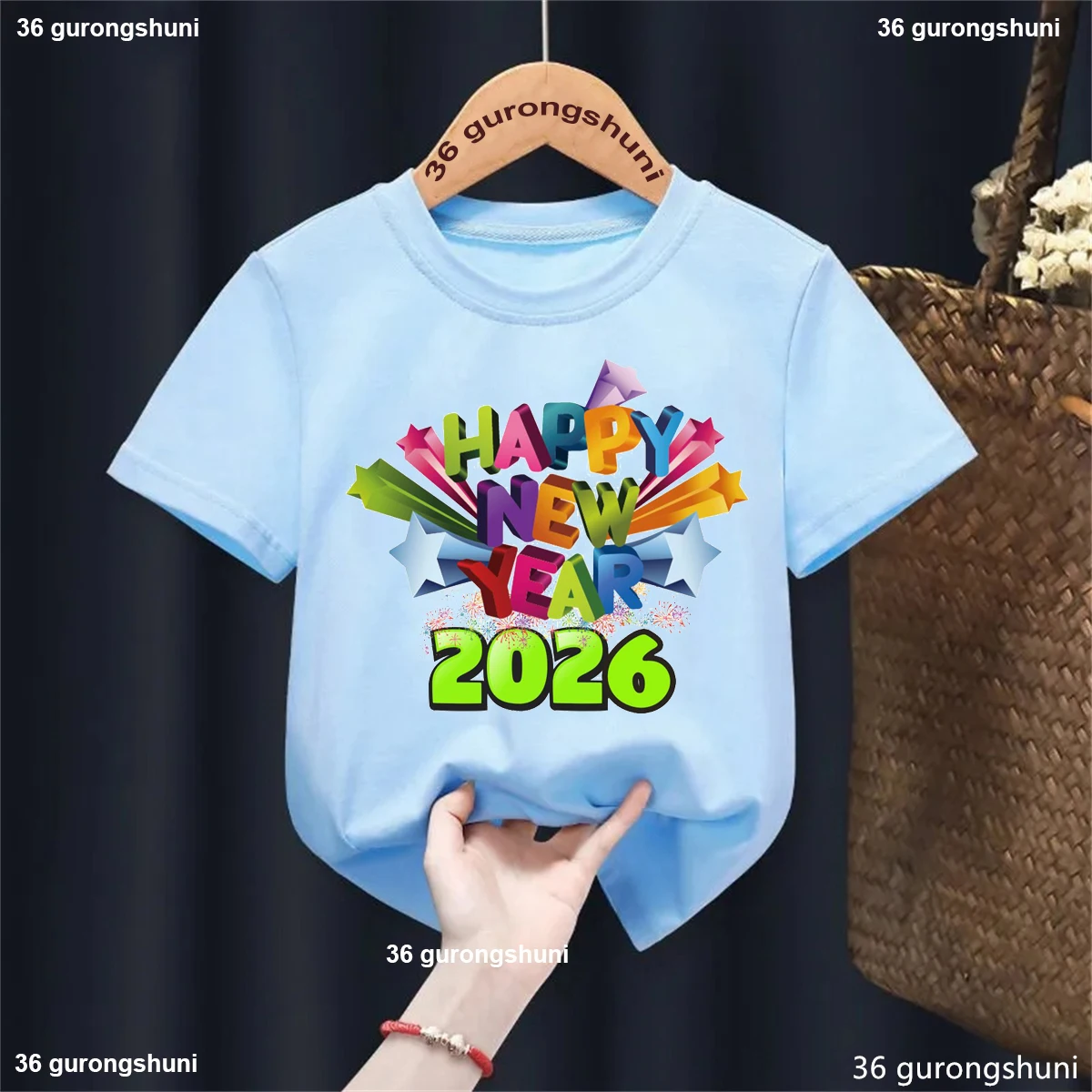 Camiseta con estampado de Feliz Año Nuevo de Big Brother 2026, trajes para niños y niñas, ropa de fiesta para niños, camisetas azules de manga corta