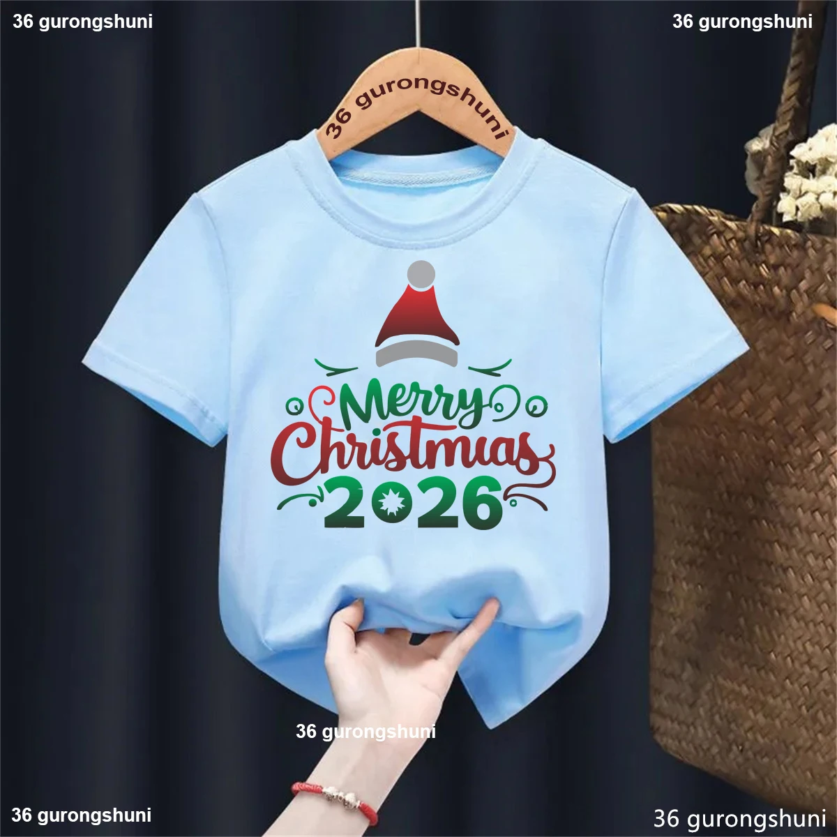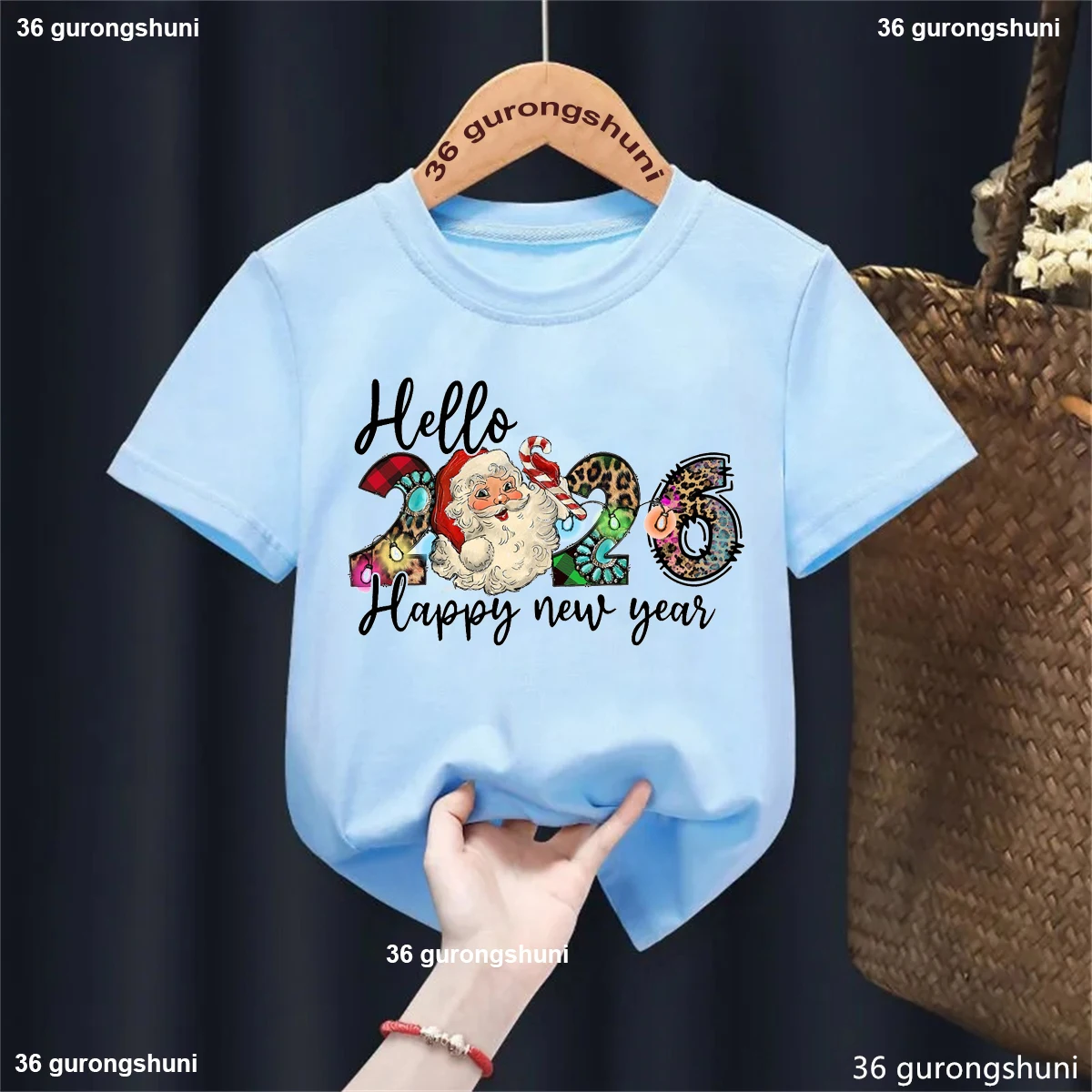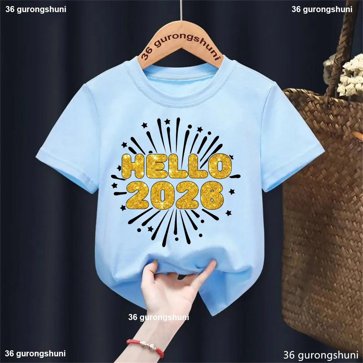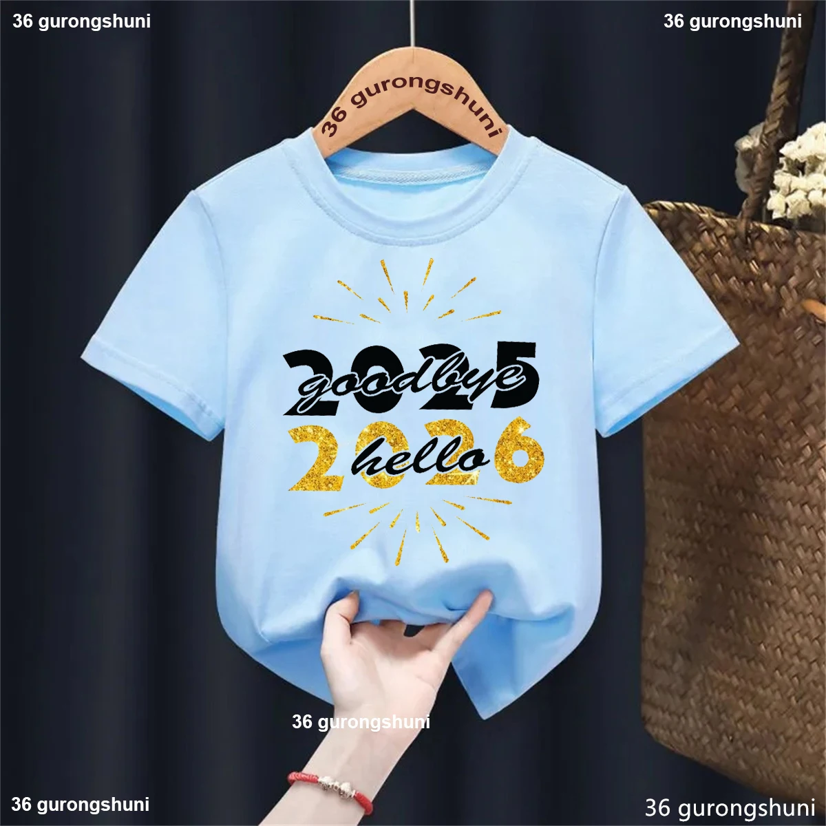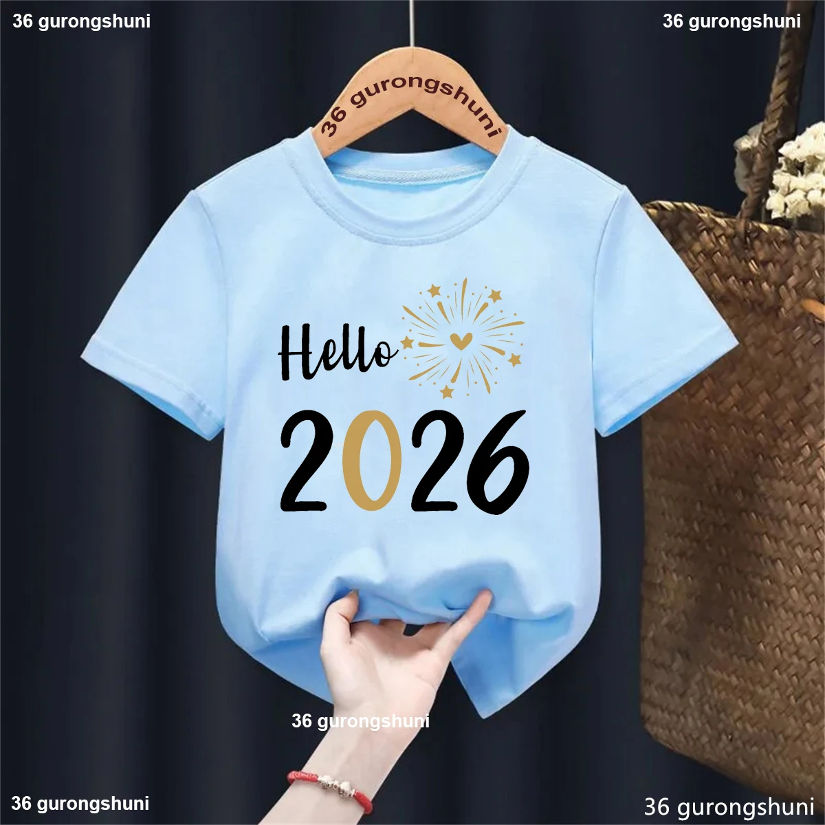 Camiseta con estampado de Feliz Año Nuevo de Big Brother 2026, trajes para niños y niñas, ropa de fiesta para niños, camisetas azules de manga corta
