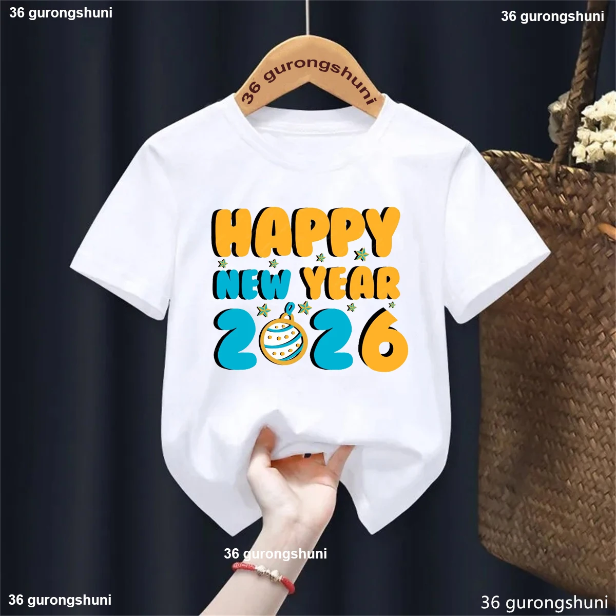Camiseta con estampado de Feliz Año Nuevo de Hello 2026, trajes para niños y niñas, ropa para fiesta de vacaciones de invierno, camisetas de manga corta para niños