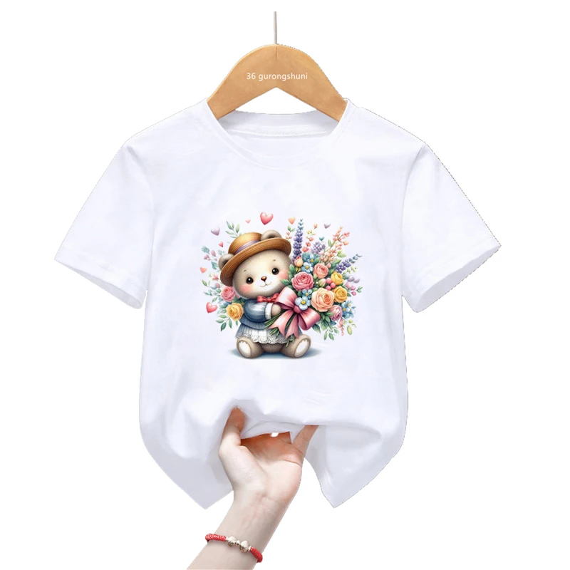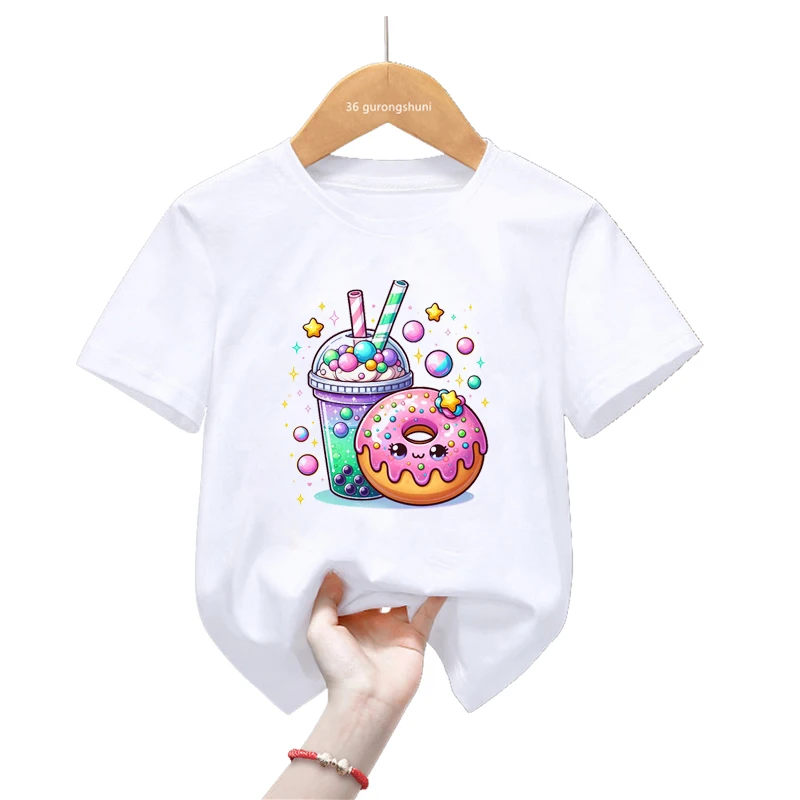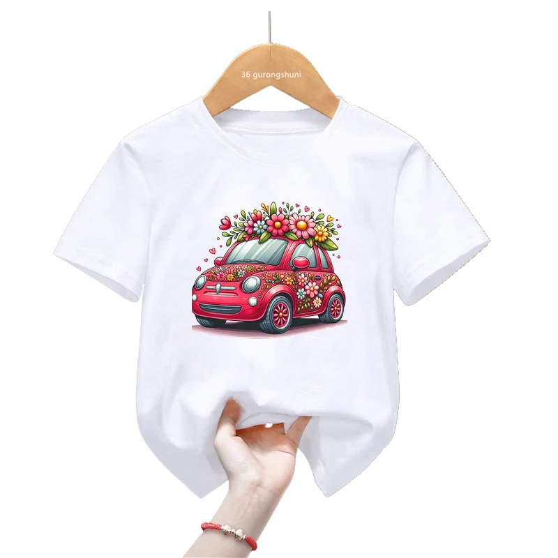 Comprar Camiseta con estampado de flores y coche para niños y niñas, ropa divertida de helado, Donut, Harajuku, Tops de verano