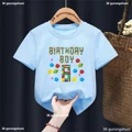 Comprar Camiseta con estampado gráfico de arcoíris para niños, ropa de moda de verano, camiseta Harajuku, bloques de construcción maestros, 8 cumpleaños