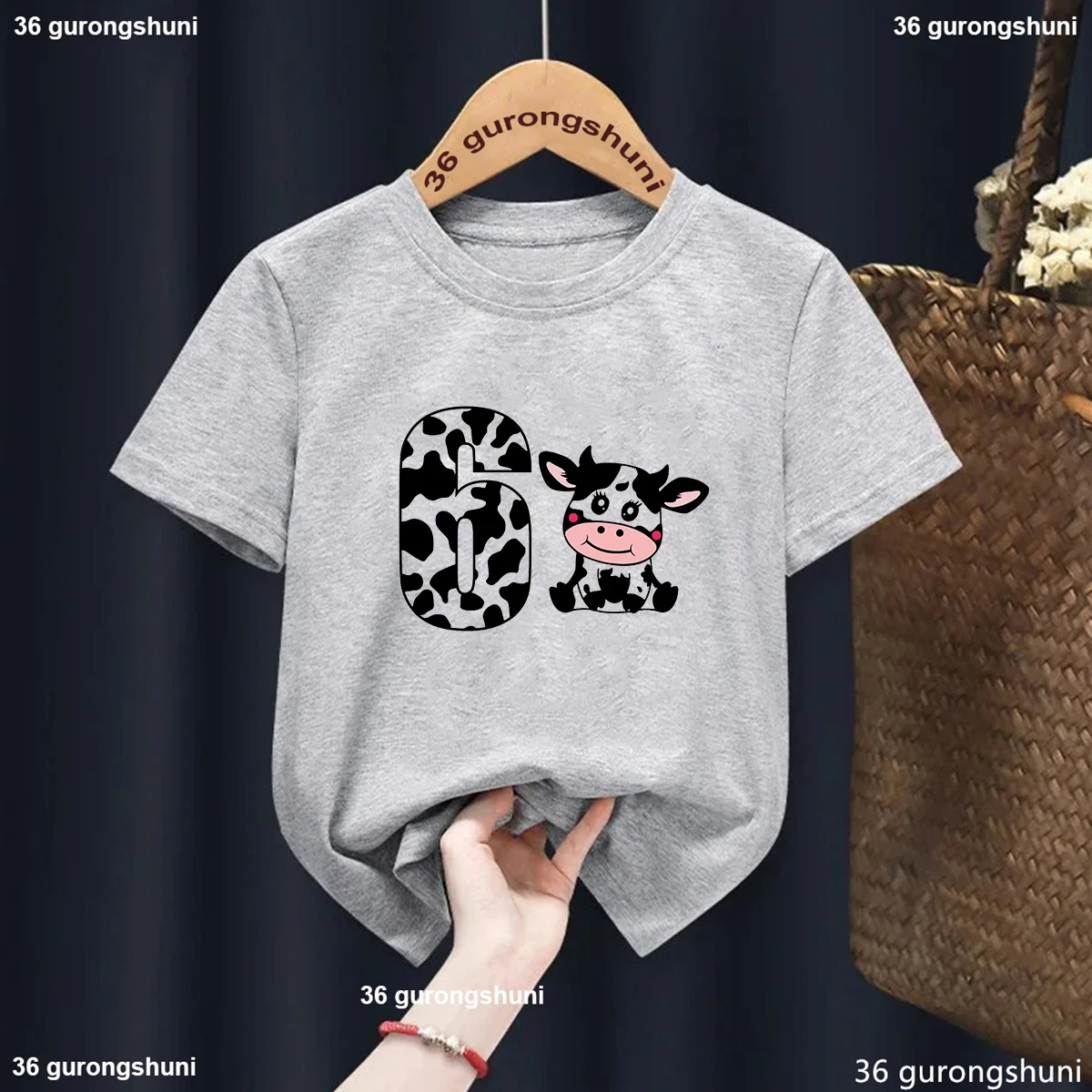 Camiseta con estampado gráfico de vaca para niños y niñas, ropa Kawaii de manga corta, color azul y gris, Harajuku, 1th/2th/3th/6th, Verano