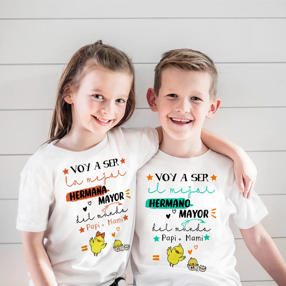 Voy a ser el mejor Hermano Mayor Hermana Mayor en el mundo Camiseta estampada Anuncio de embarazo Camiseta para niños Camiseta de verano para niños