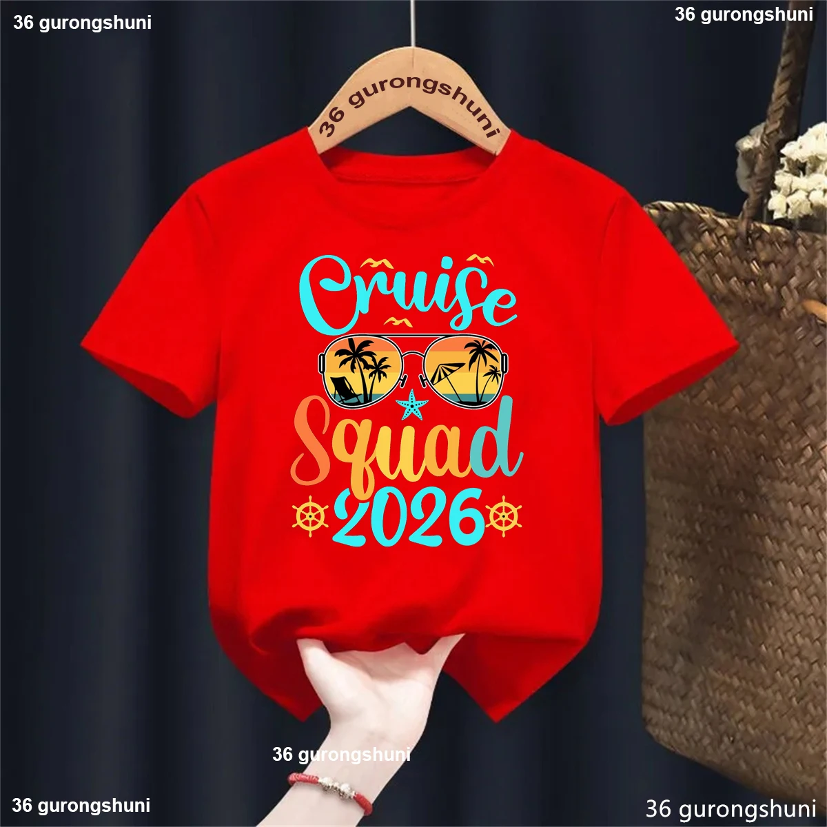 Camiseta con estampado de letras Cruise Squad 2026, camiseta de viaje de vacaciones para niñas/niños, ropa Kawaii para niños, camisetas de manga corta de verano