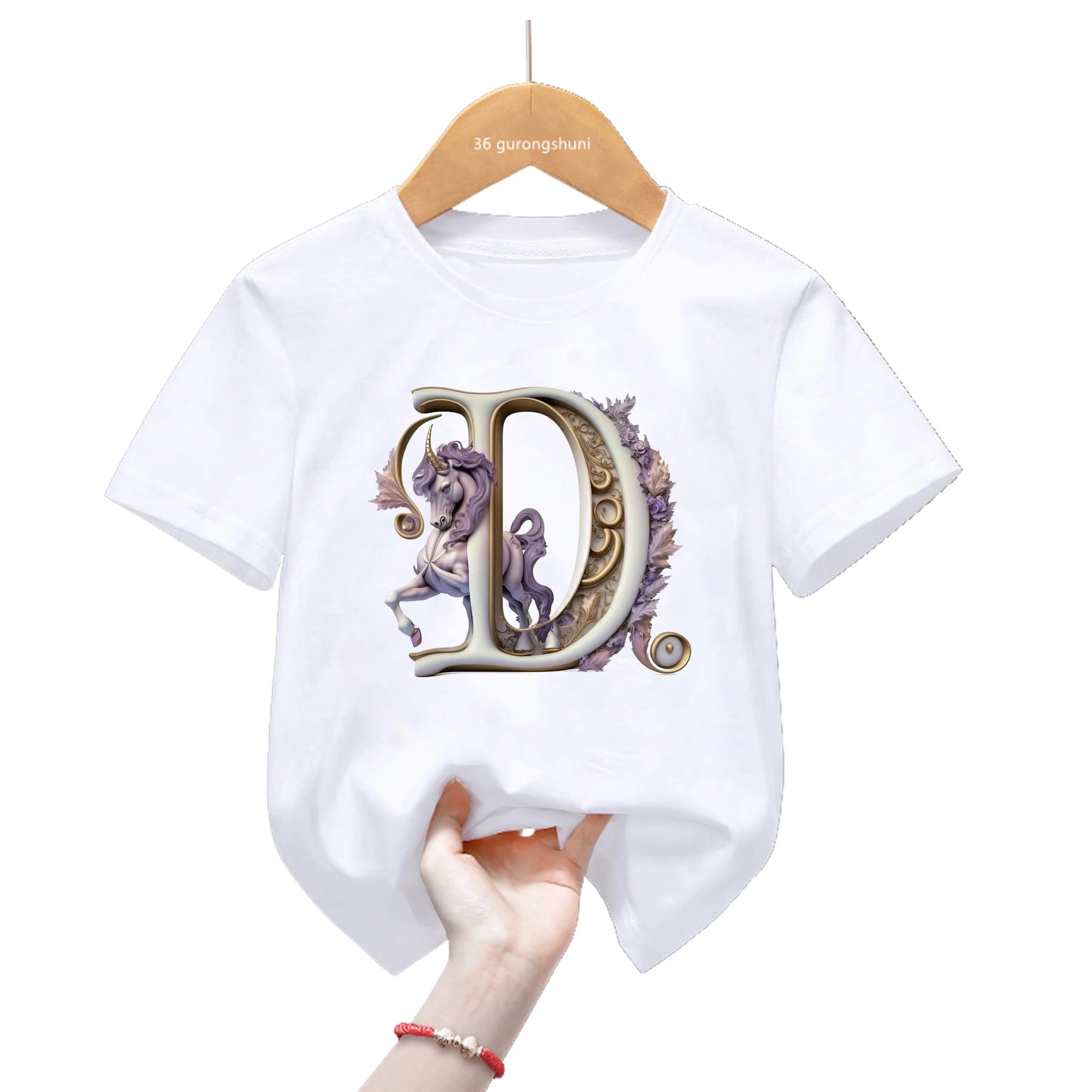 Comprar Camiseta con estampado de nombre del alfabeto para niñas, ropa Harajuku Kawaii, Tops de moda de verano, camiseta blanca fresca
