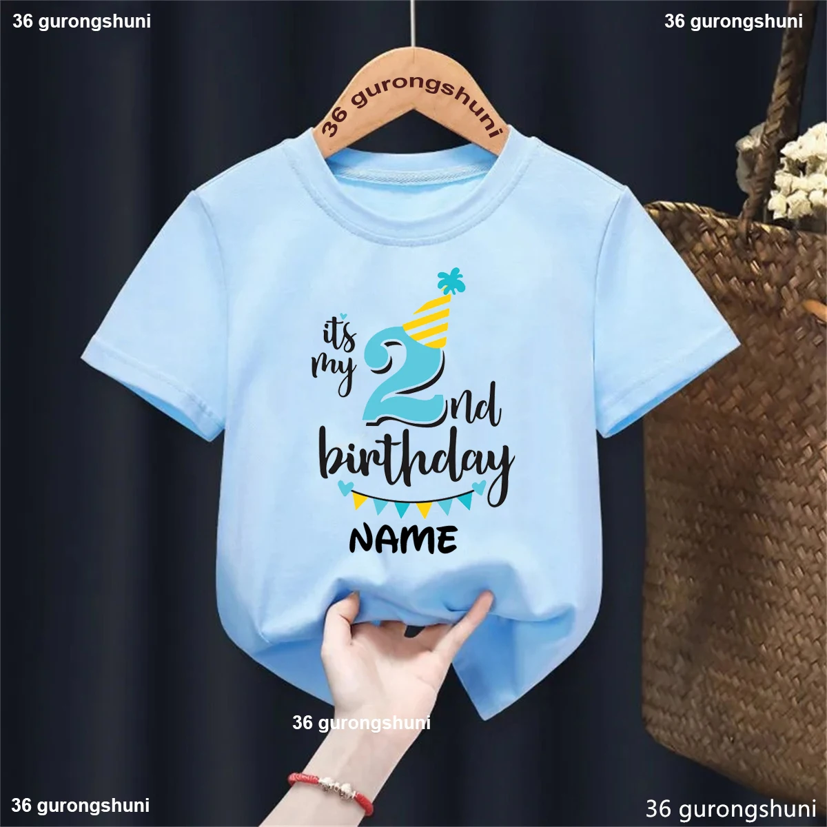 Camiseta con estampado de nombre personalizado It's My 2nd/3rd Birthday, ropa para niñas y niños, el mejor regalo de cumpleaños, camiseta de manga corta