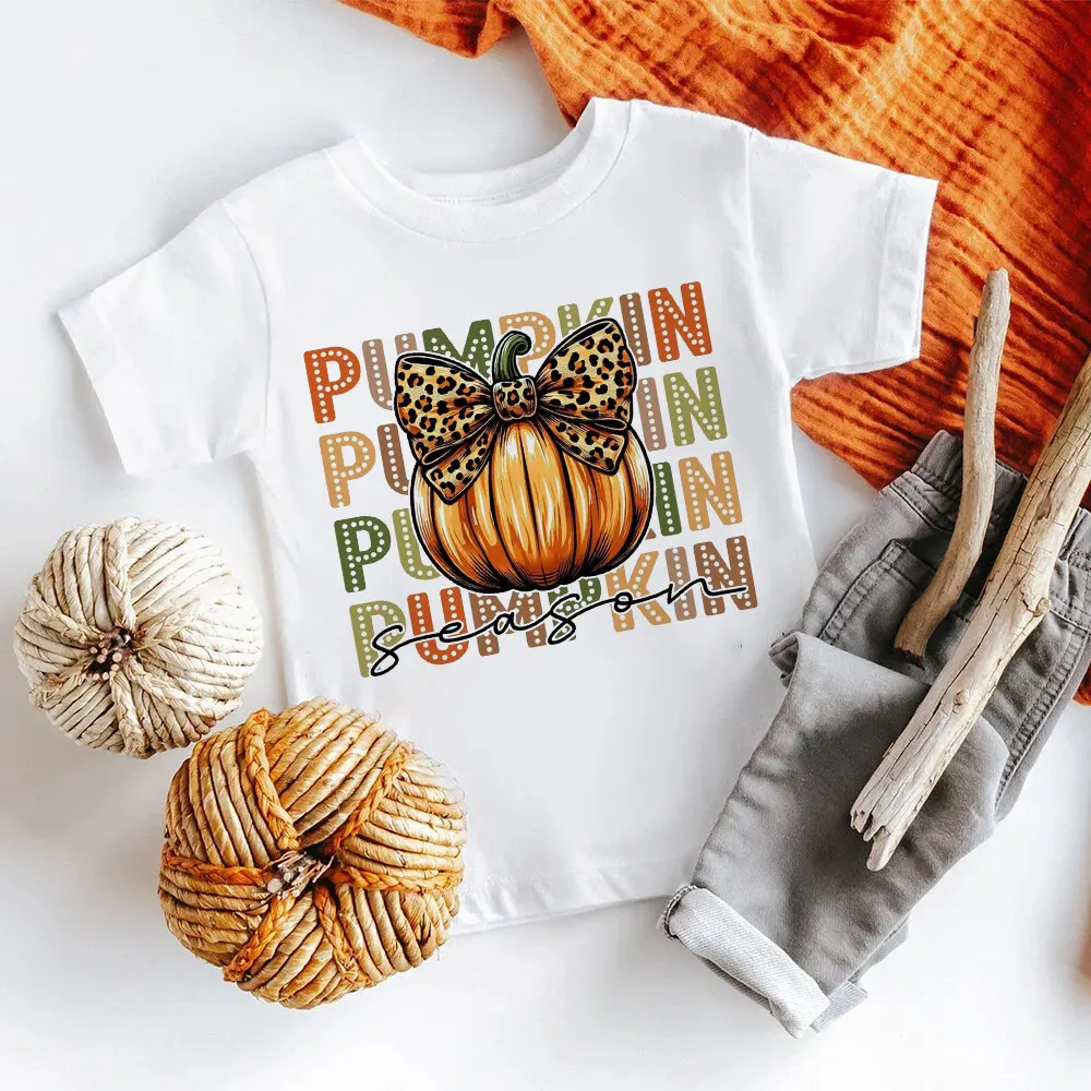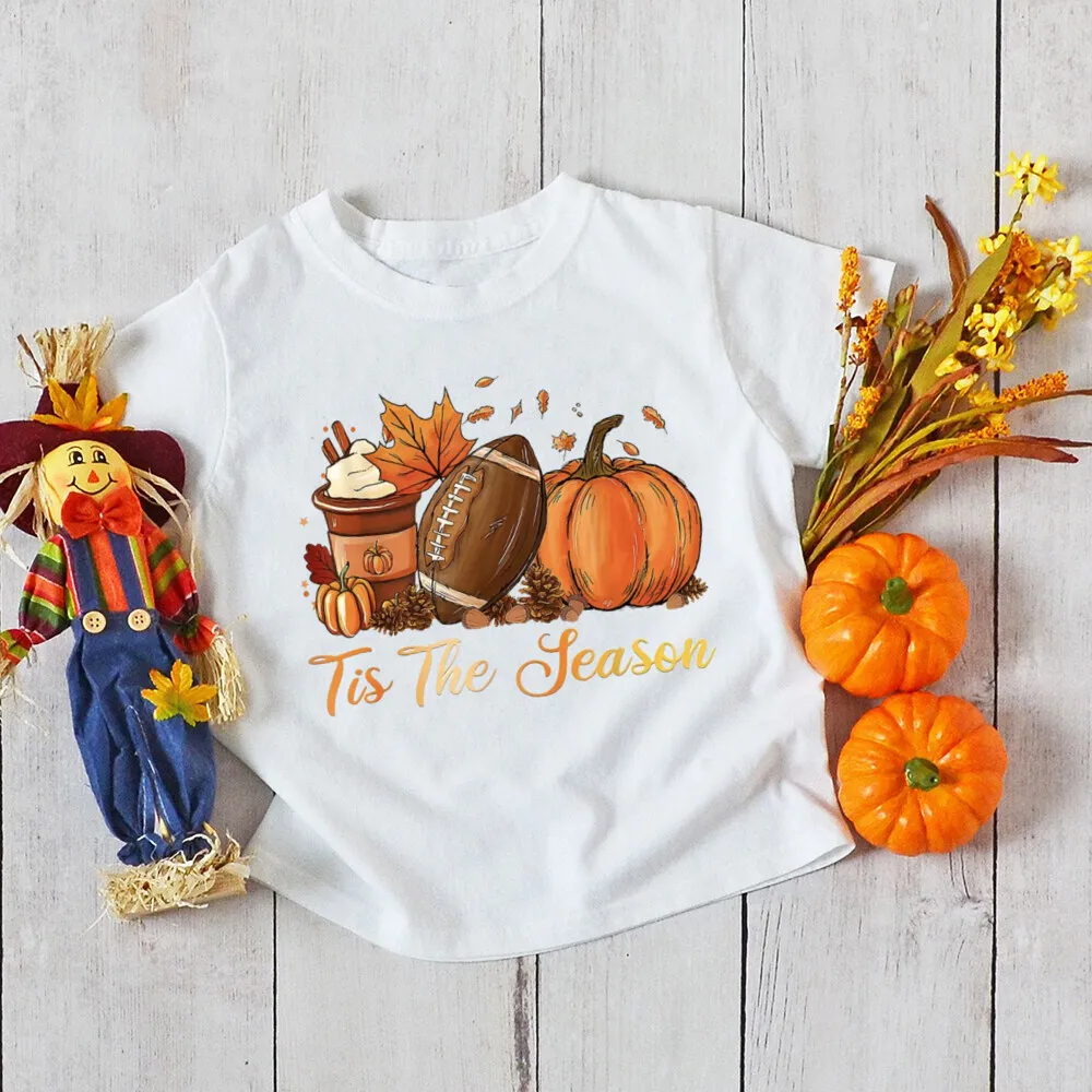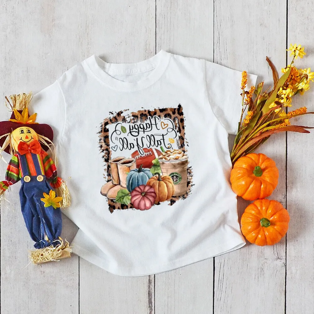 Camiseta con estampado de temporada de calabaza para niños, traje para fiesta de Acción de Gracias para niños y niñas, camisas de manga corta para niños, ropa, Tops