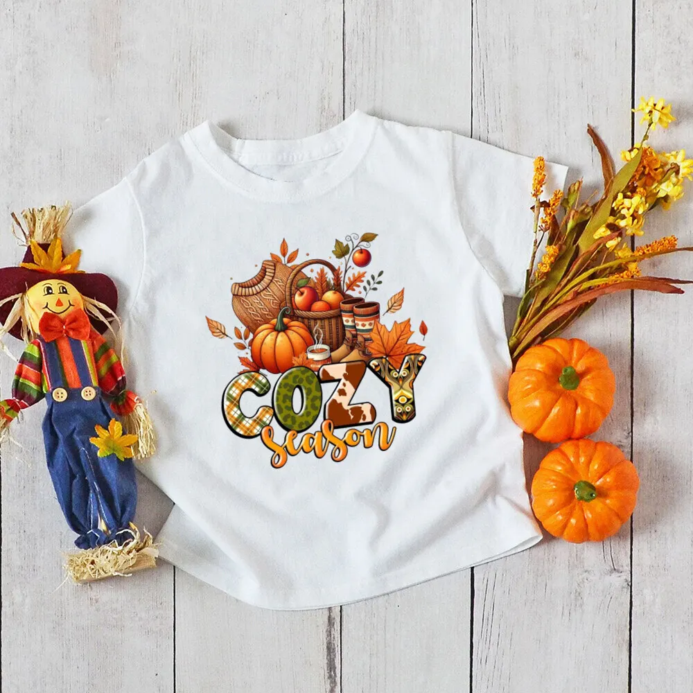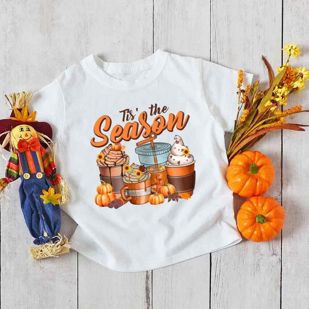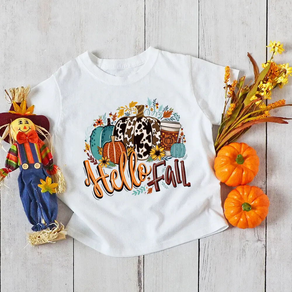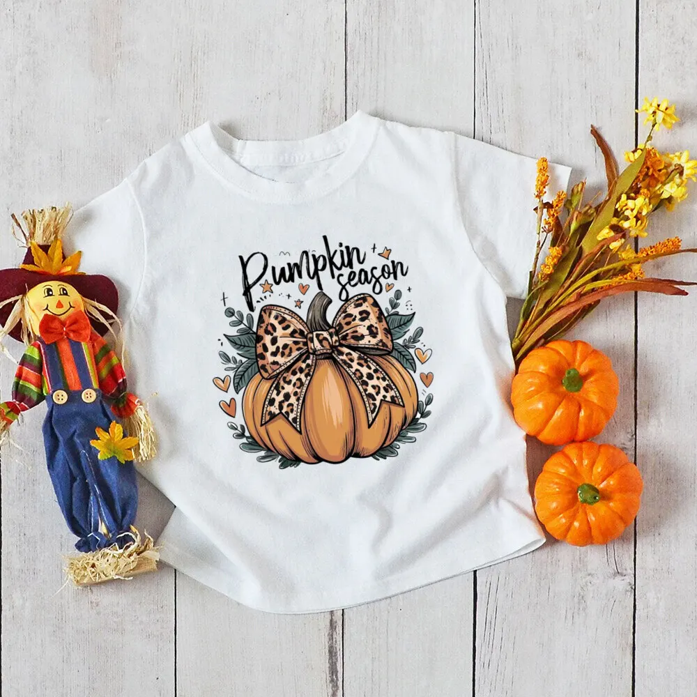 Camiseta con estampado de temporada de calabaza para niños, traje para fiesta de Acción de Gracias para niños y niñas, camisas de manga corta para niños, ropa, Tops