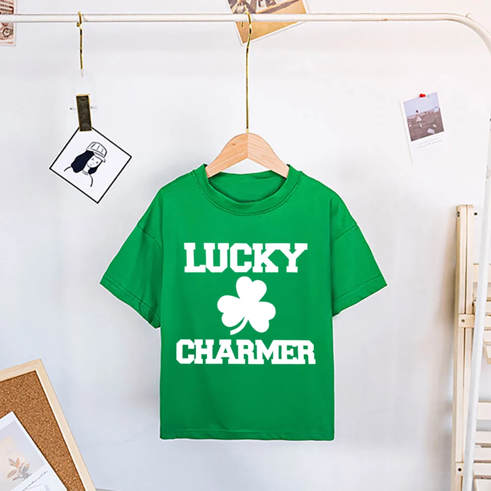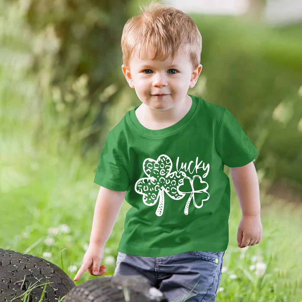 Camisa con estampado de trébol de la suerte para niños, ropa para niñas y niños, camisas verdes para niños pequeños, camiseta para niños, regalo, ropa para niños