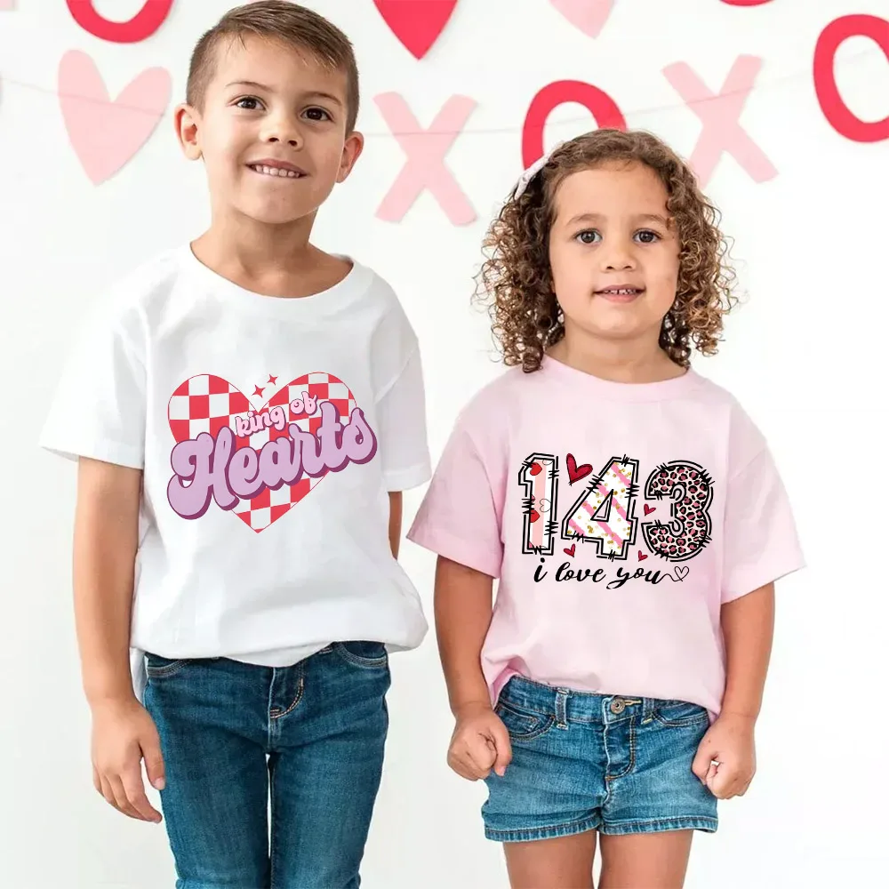 Camiseta con estampado de King of Hearts para niños, ropa para niñas y niños, camisas de San Valentín para niños pequeños, camiseta de regalo para niños del Día de Valetine, trajes para niños